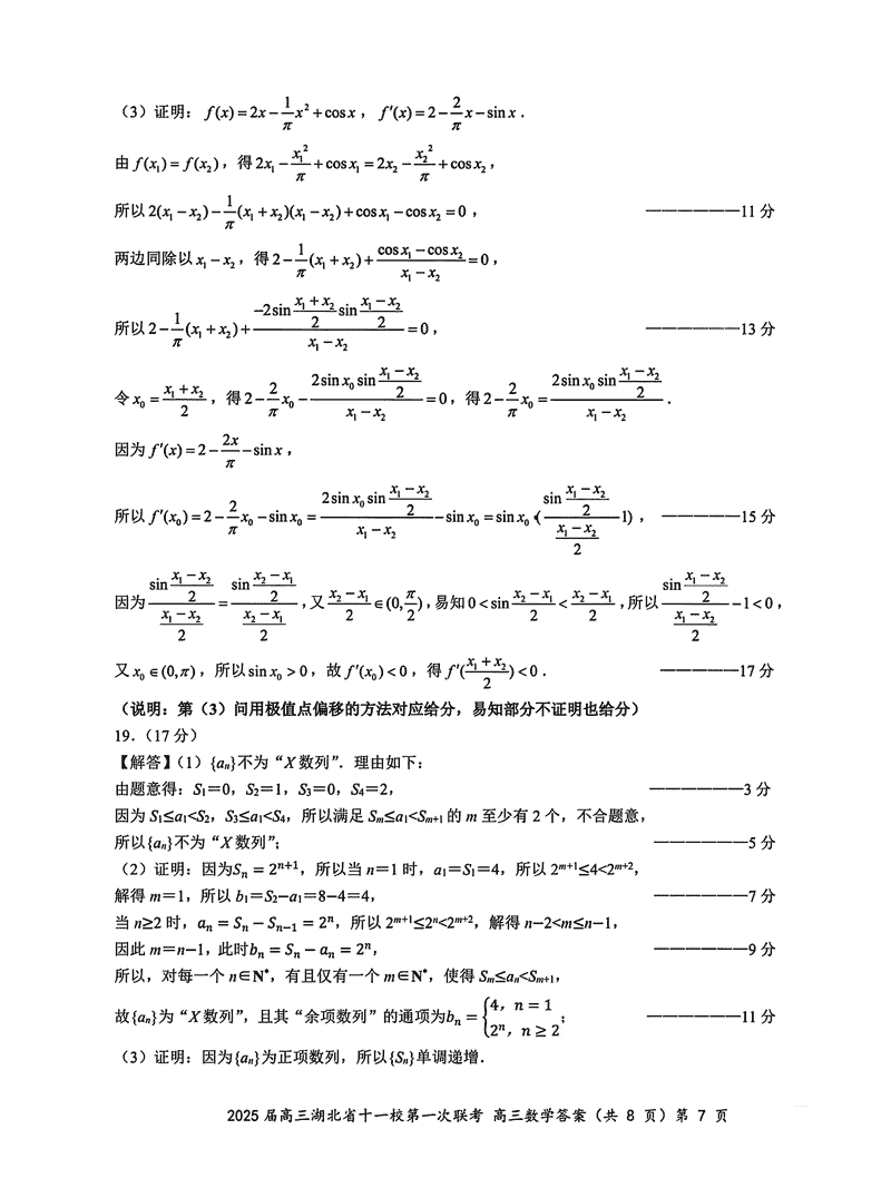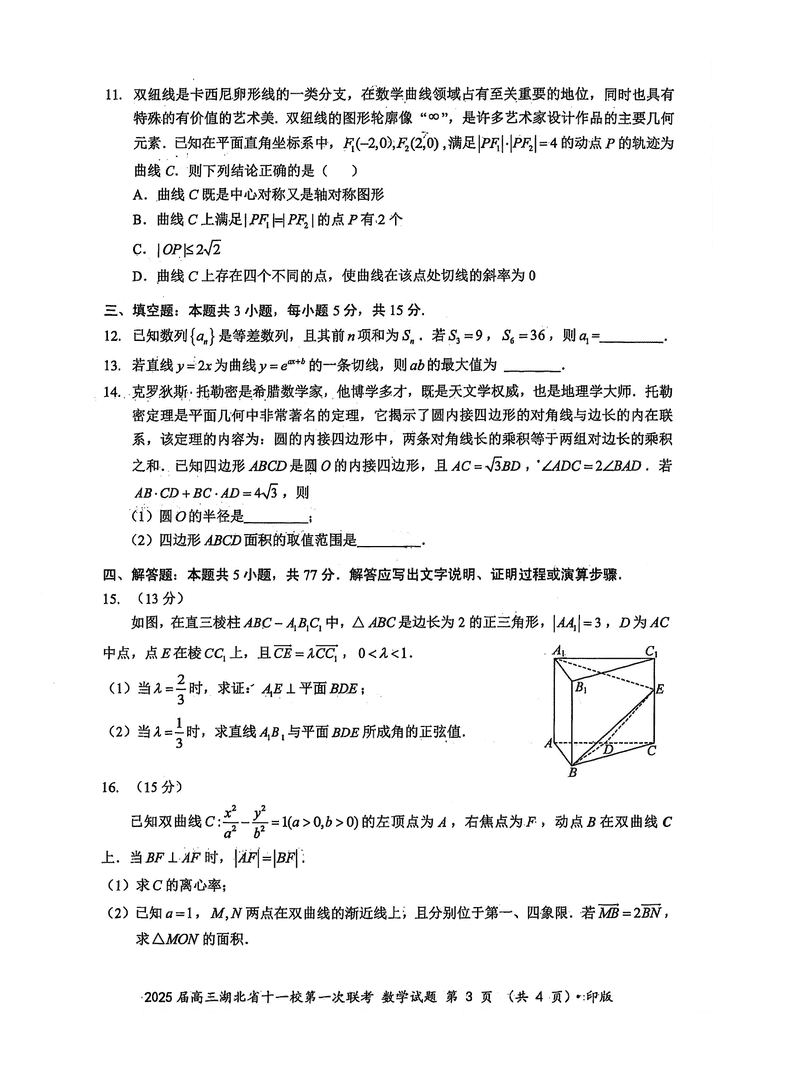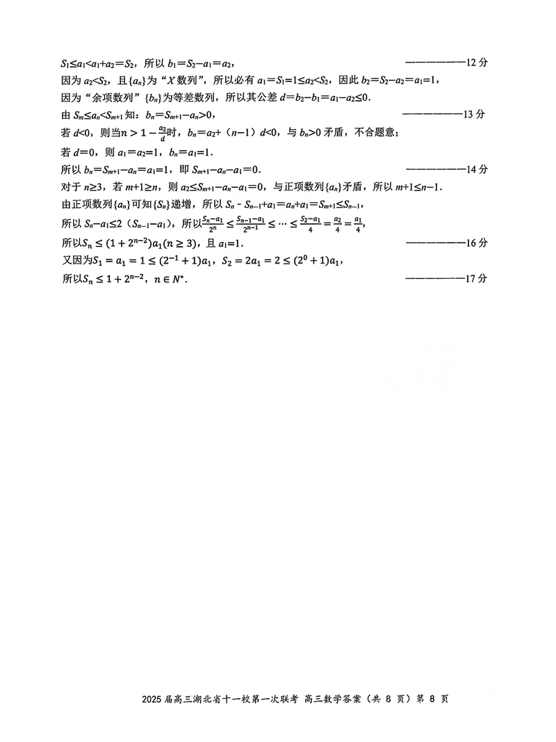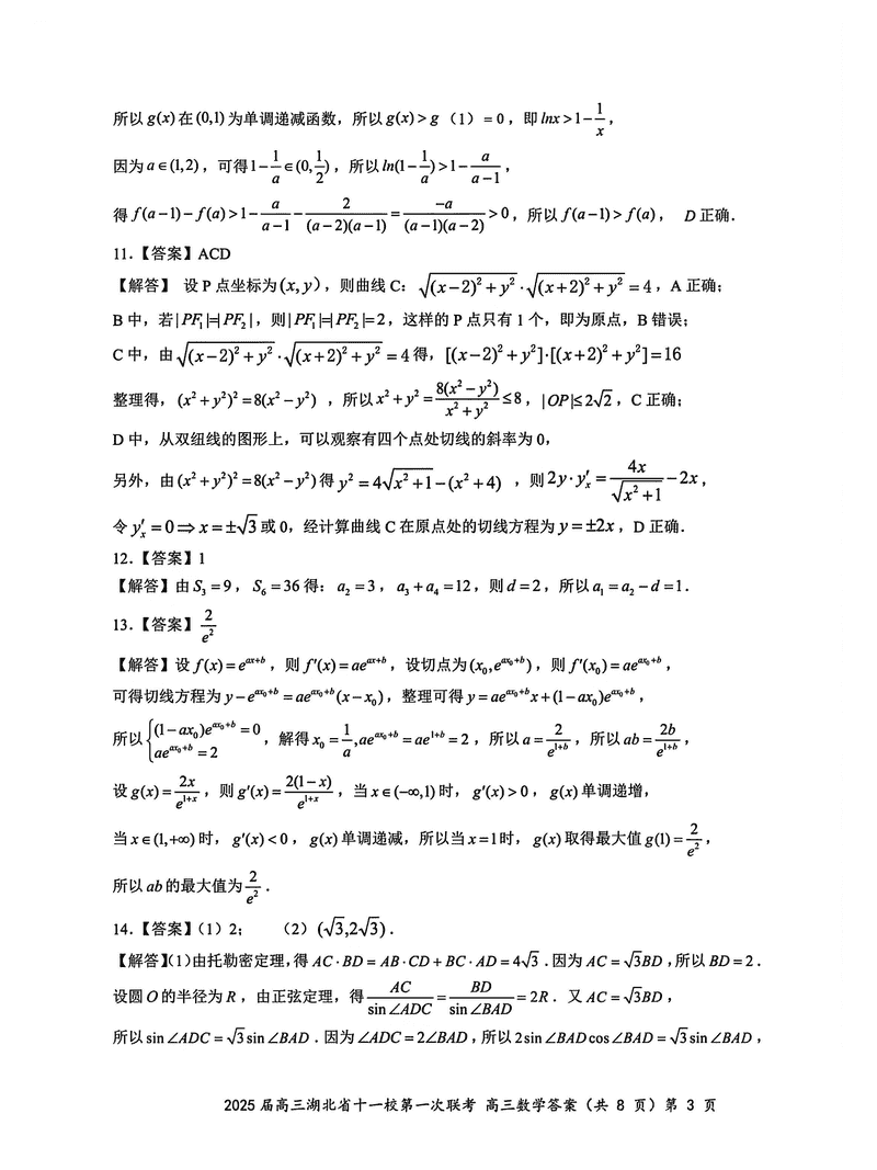 湖北十一校2025届高三12月第一次联考数学试题及答案