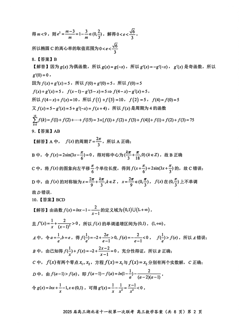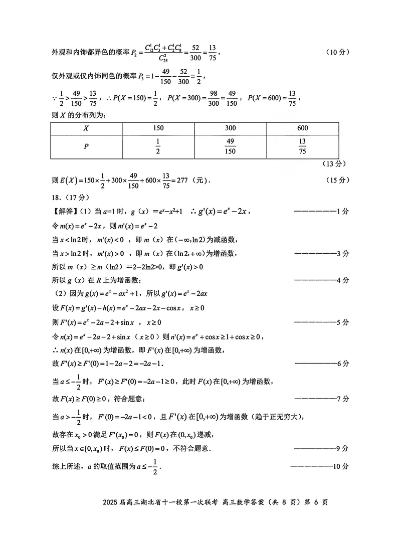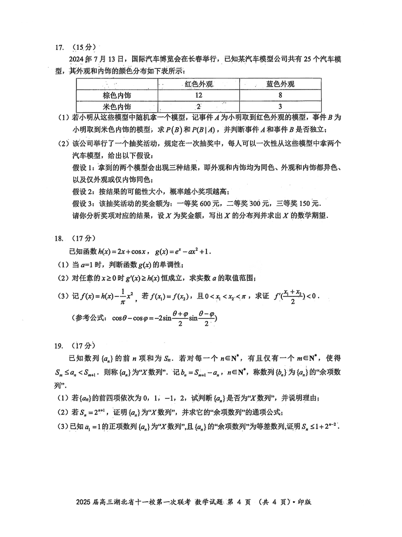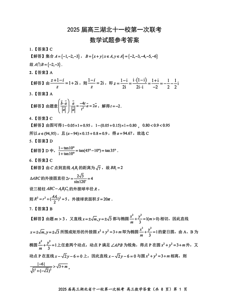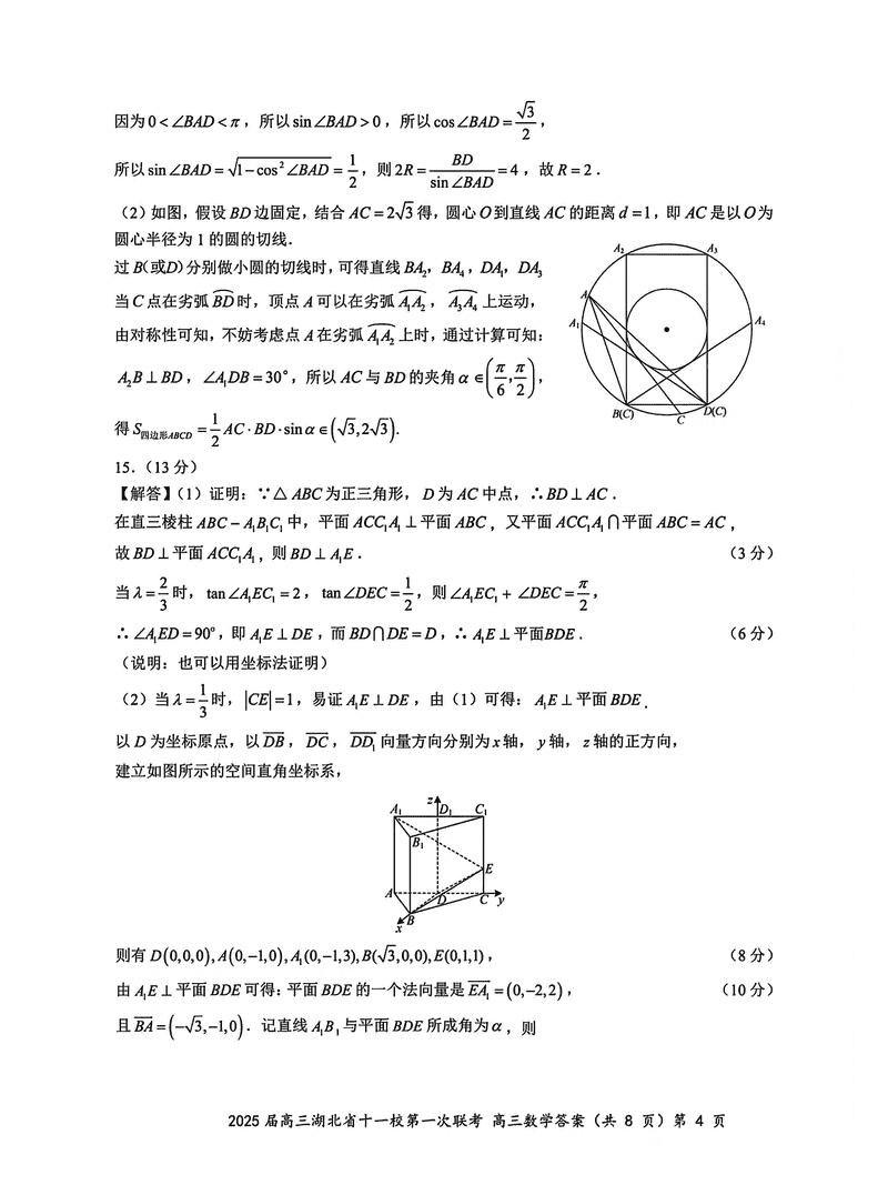 湖北十一校2025届高三12月第一次联考数学试题及答案