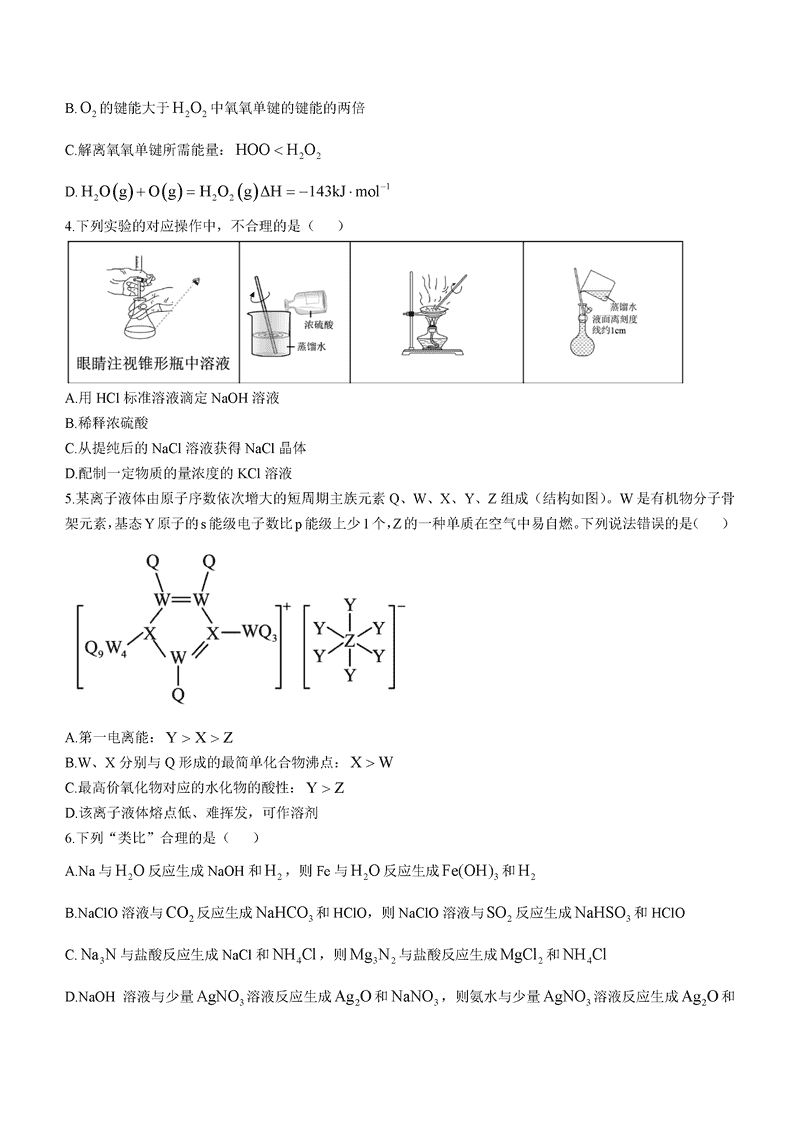 化学试题及答案解析