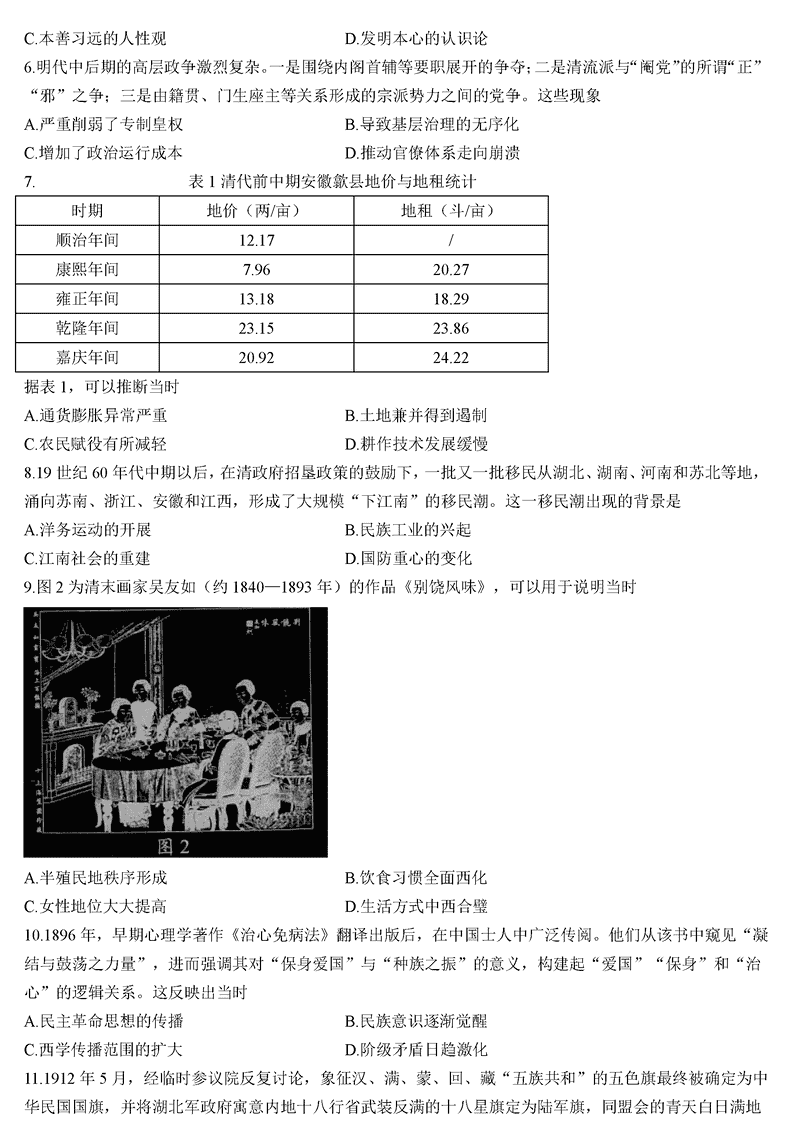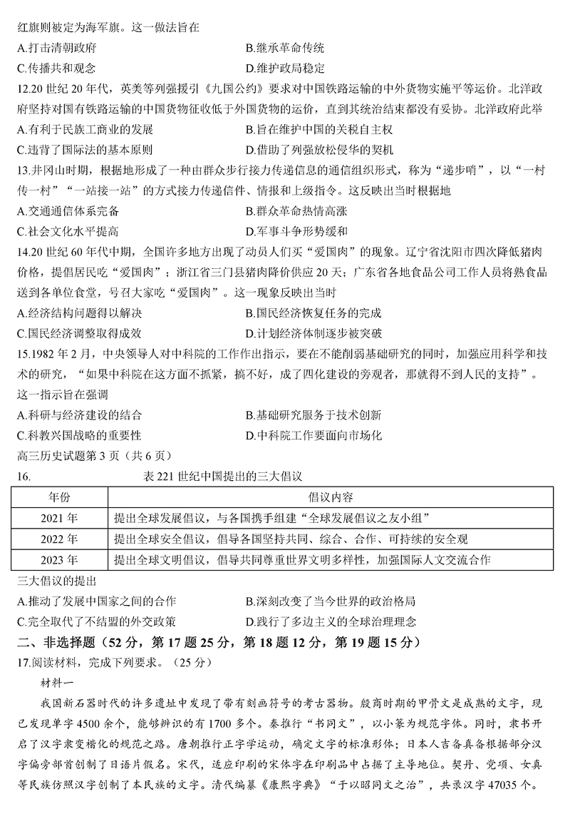 四川蓉城名校联盟2025届高三上学期第一次联考历史试题及答案