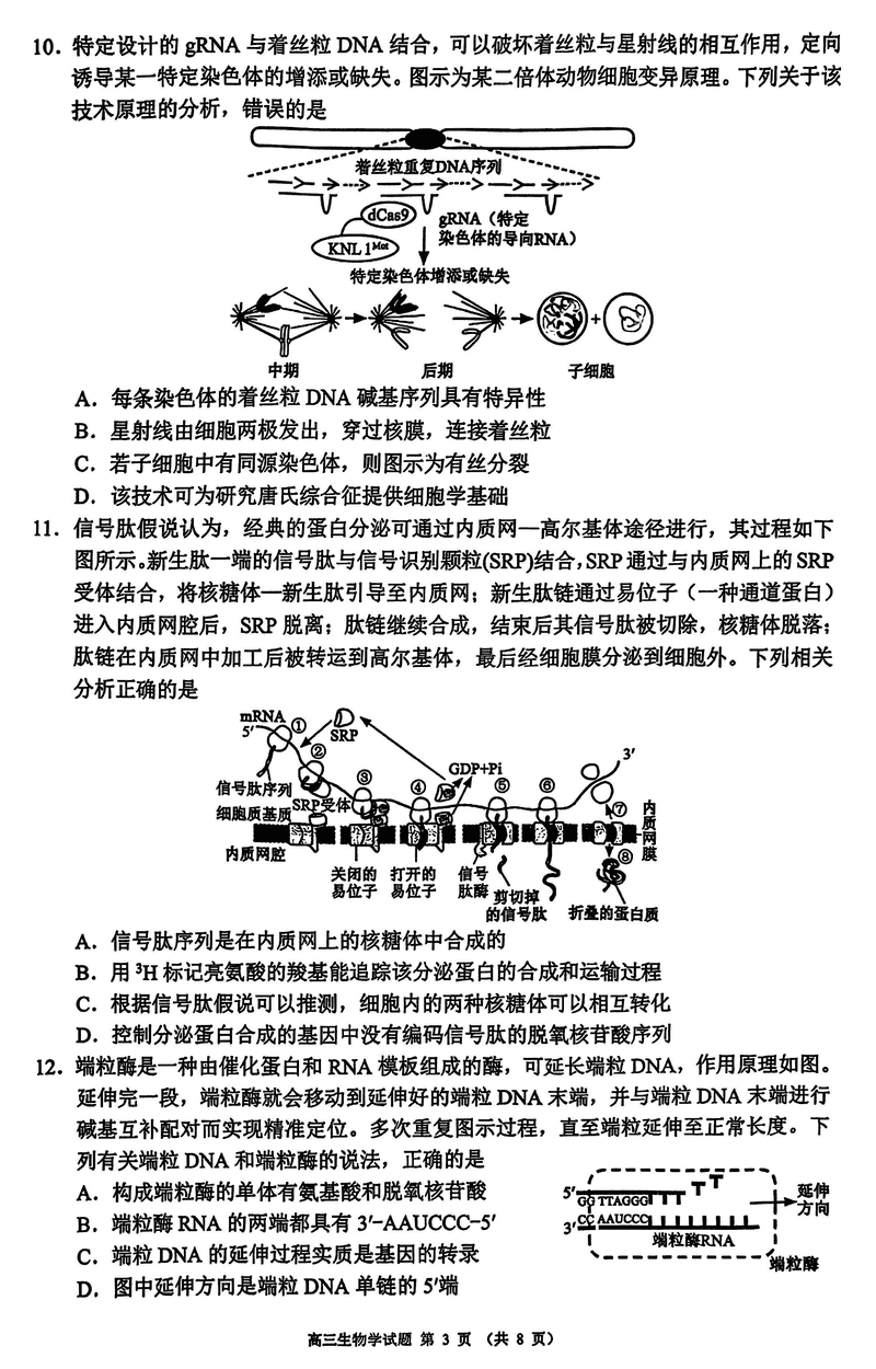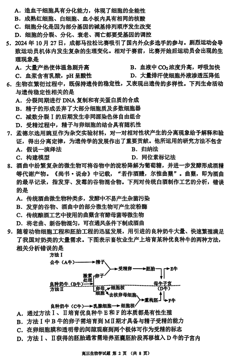 四川蓉城名校联盟2025届高三上学期第一次联考生物试题及答案