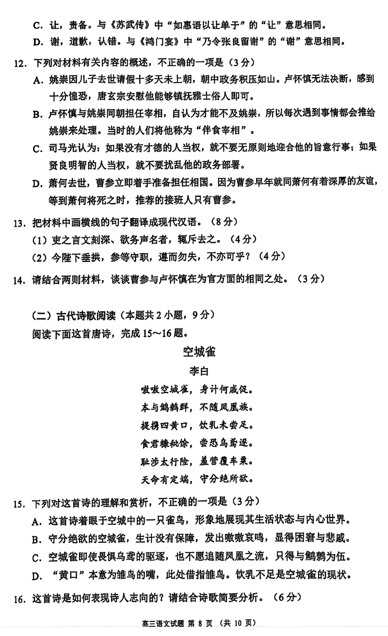 四川蓉城名校联盟2025届高三上学期第一次联考语文考试已于近日开考,为方便考生考后及时查看考试情况,查漏补缺、弥补不足,本文整理了试题答案解析相关信息!