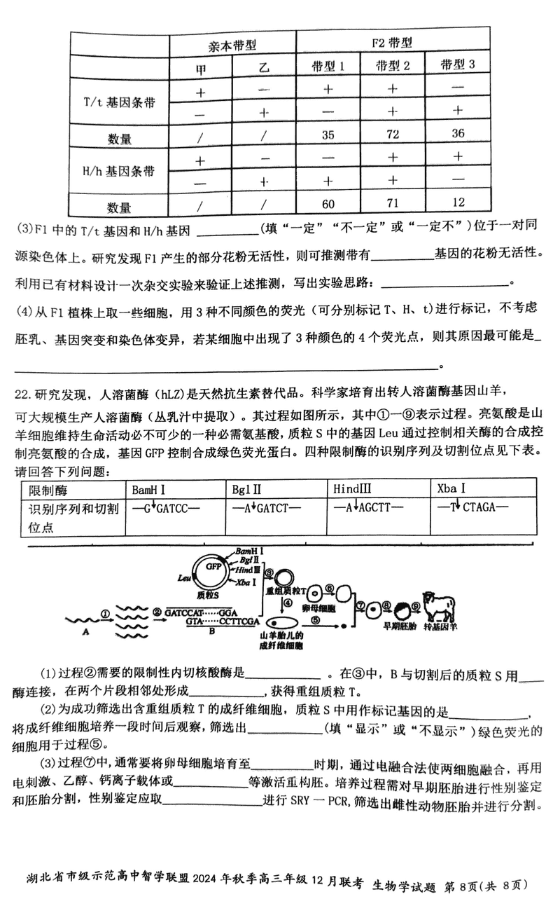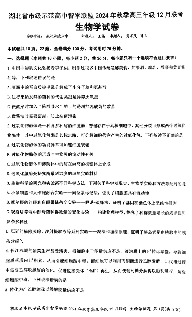 湖北智学联盟2024年秋季高三12月联考生物考试已于近日开考,为方便考生考后及时查看考试情况,查漏补缺、弥补不足,本文整理了试题答案解析相关信息!