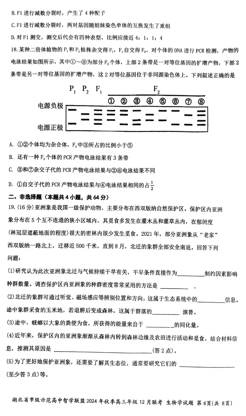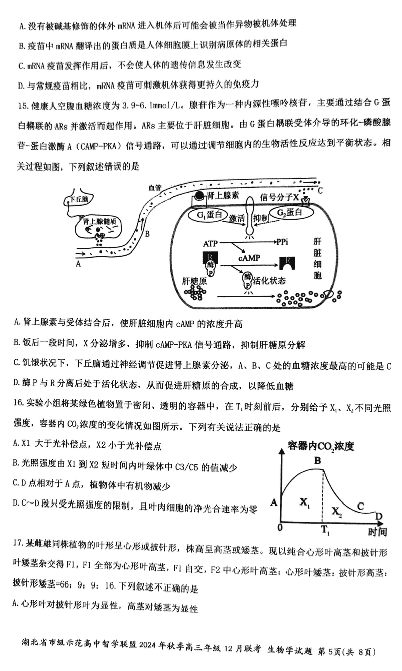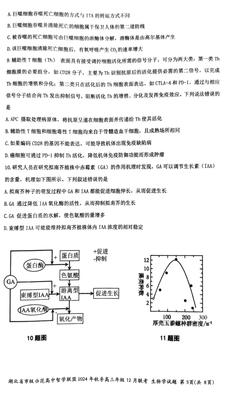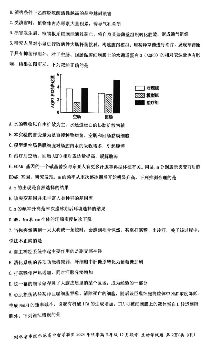 湖北智学联盟2024年秋季高三12月联考生物试题及答案