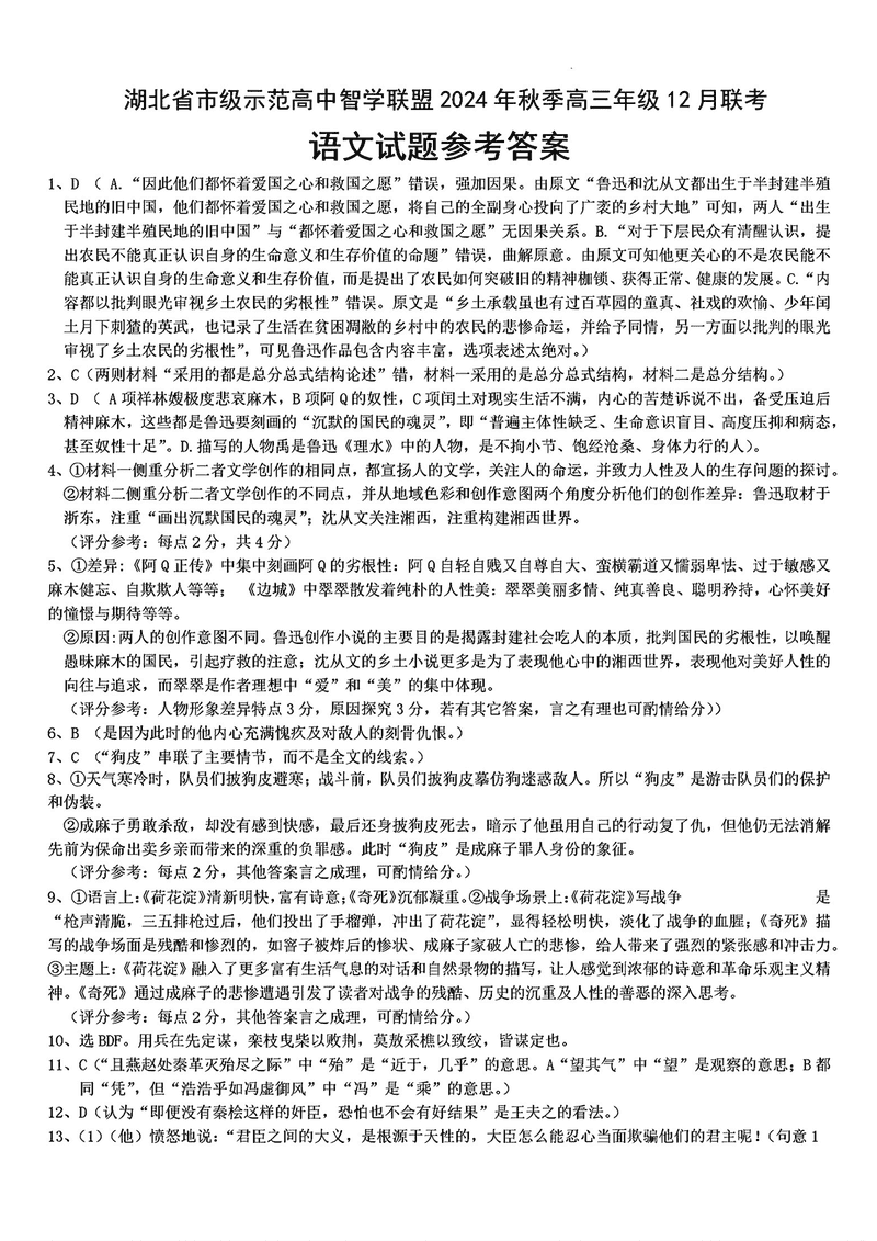 湖北智学联盟2024年秋季高三12月联考语文考试已于近日开考,为方便考生考后及时查看考试情况,查漏补缺、弥补不足,本文整理了试题答案解析相关信息!
