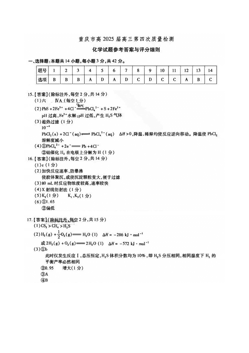 重庆南开中学2025届高三第四次质检化学考试已于近日开考,为方便考生考后及时查看考试情况,查漏补缺、弥补不足,本文整理了试题答案解析相关信息!