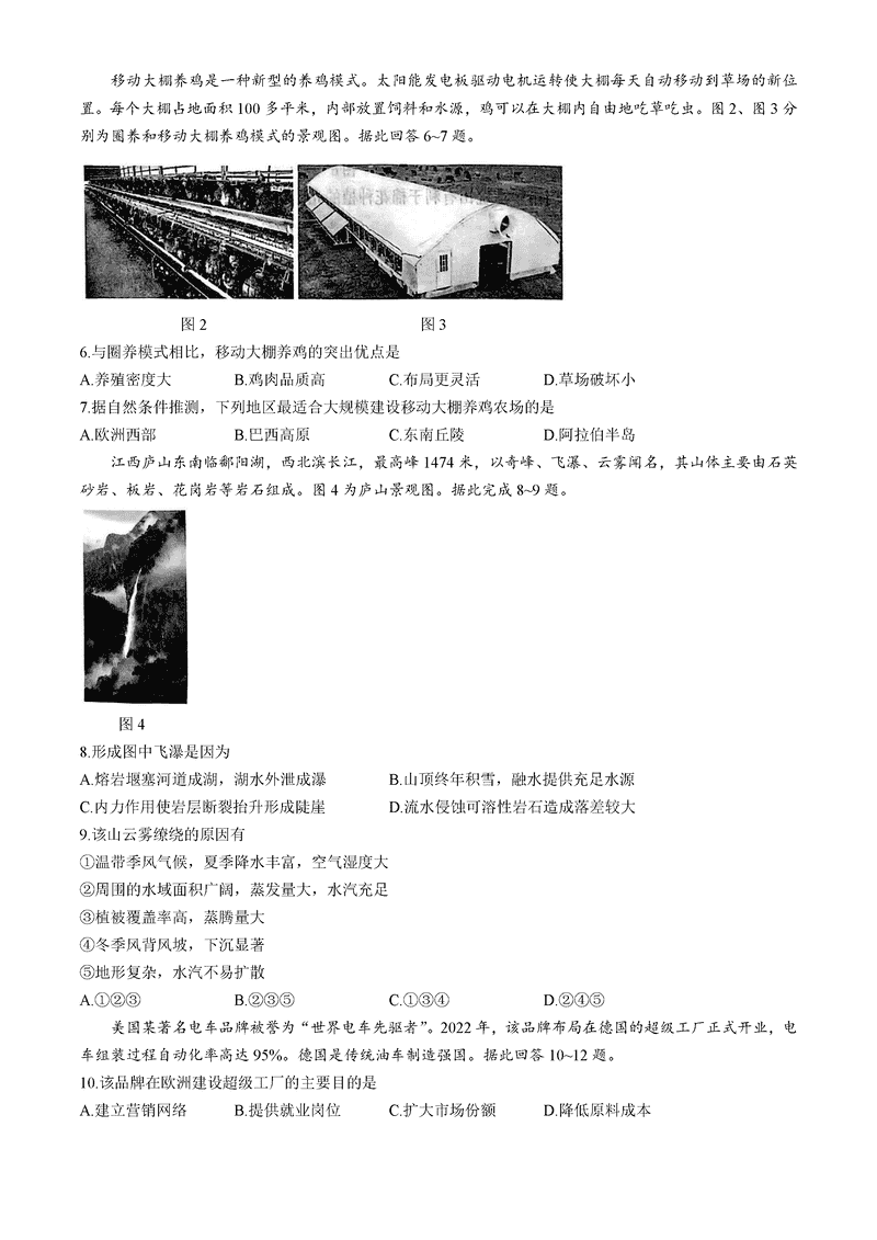 重庆南开中学2025届高三第四次质检地理试题及答案