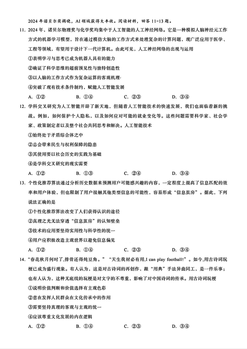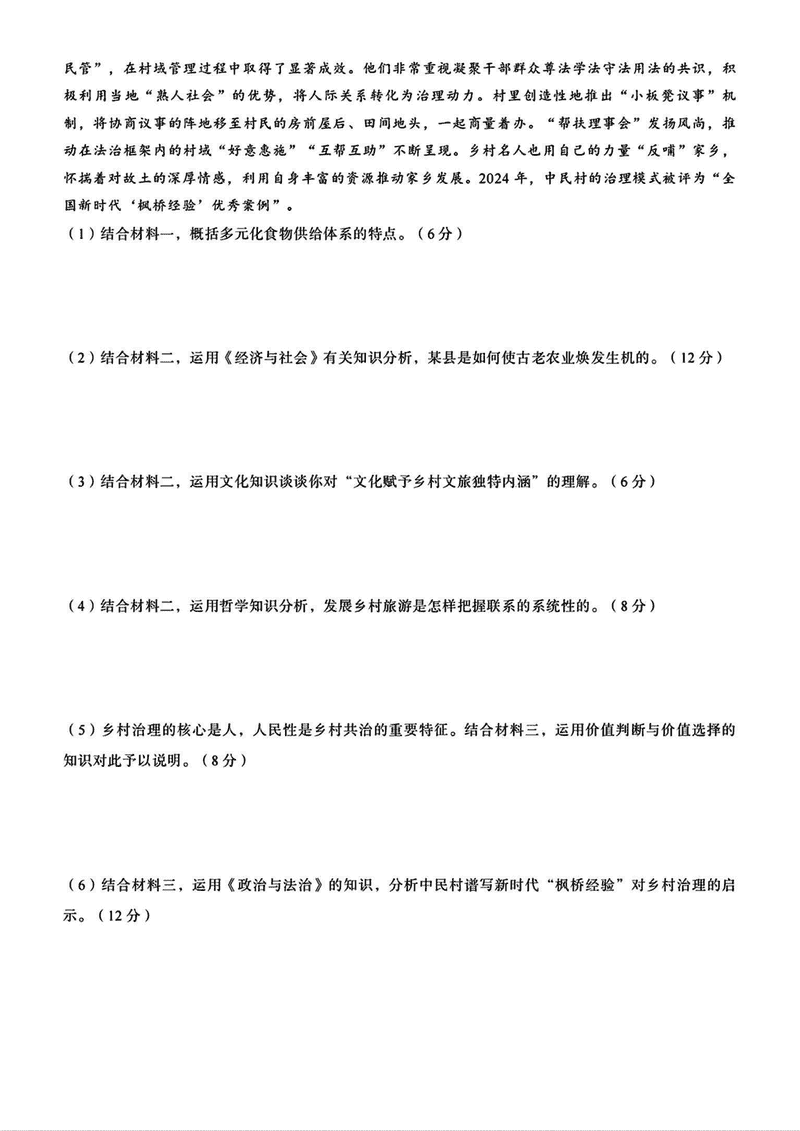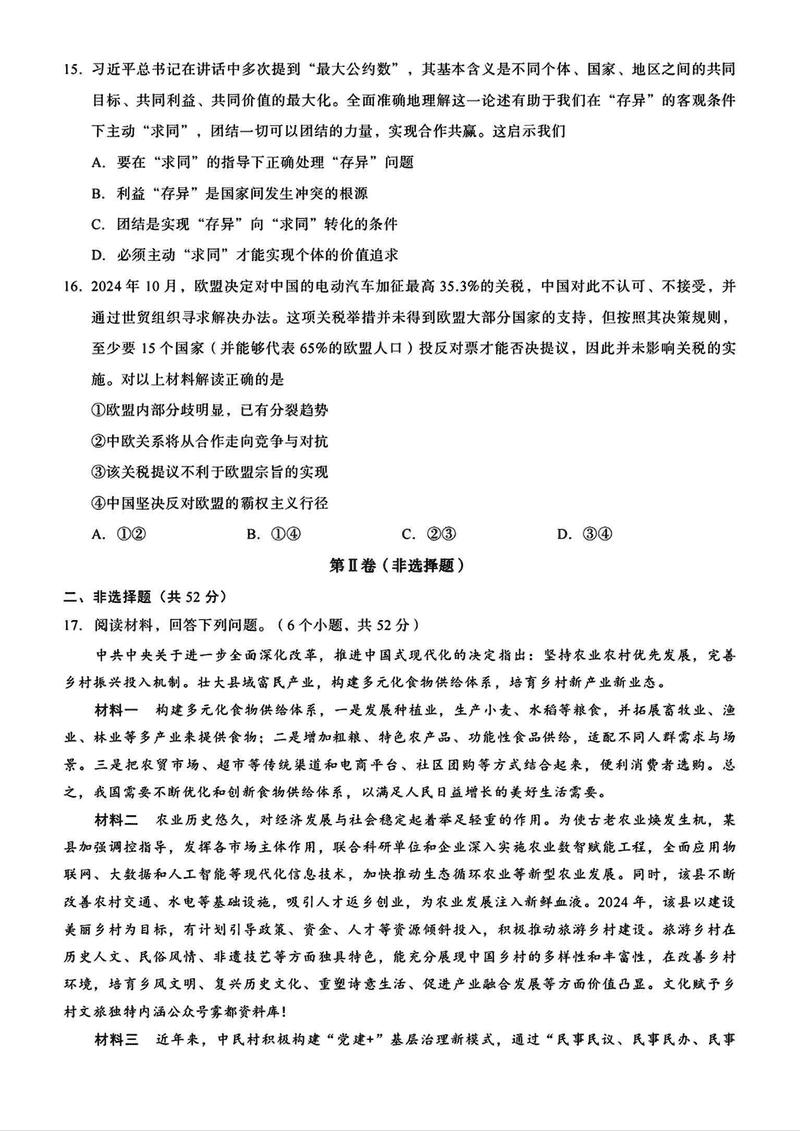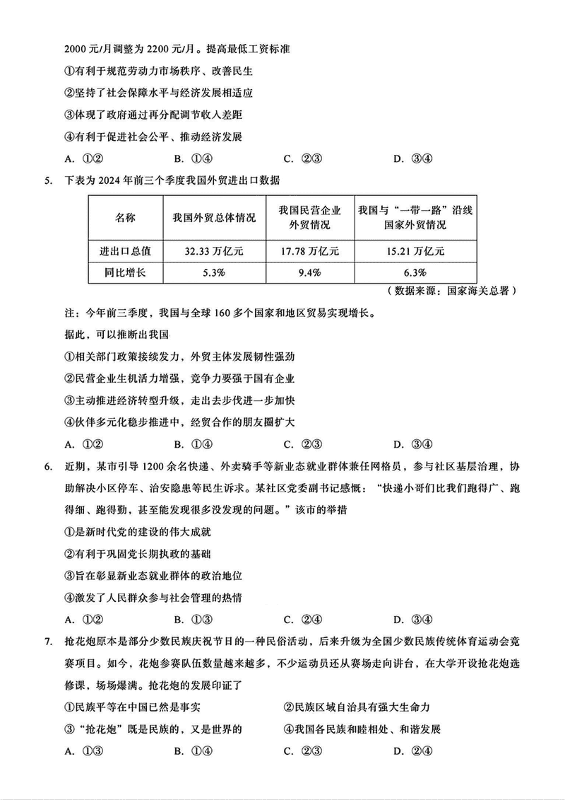 重庆南开中学2025届高三第四次质检政治试题及答案