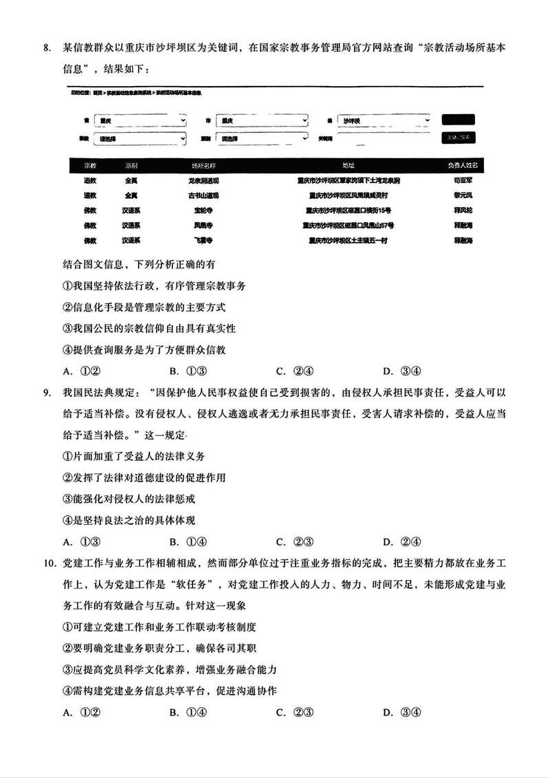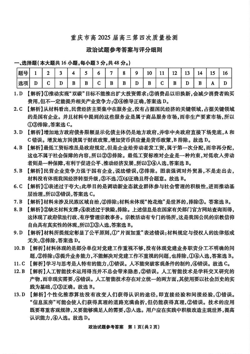 重庆南开中学2025届高三第四次质检政治考试已于近日开考,为方便考生考后及时查看考试情况,查漏补缺、弥补不足,本文整理了试题答案解析相关信息!