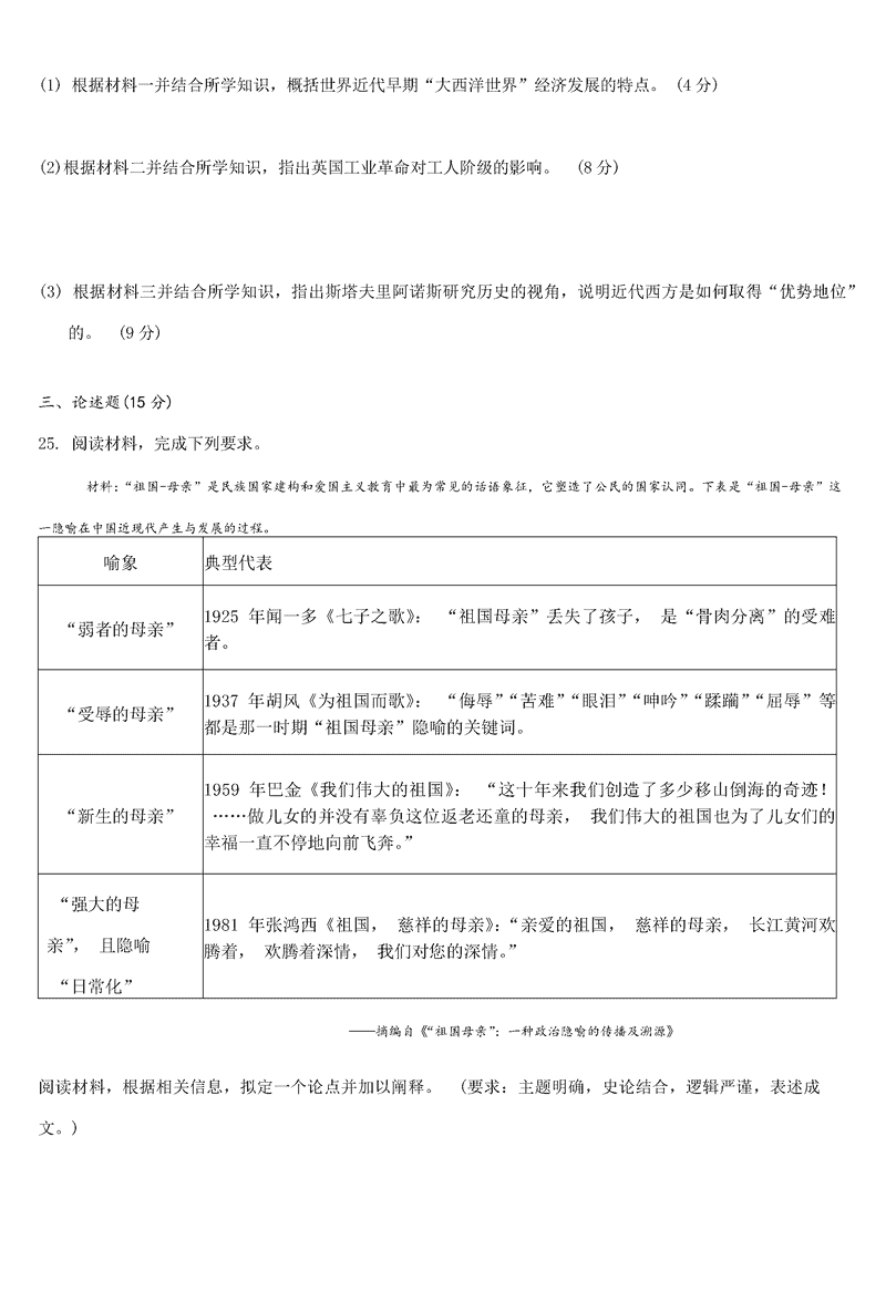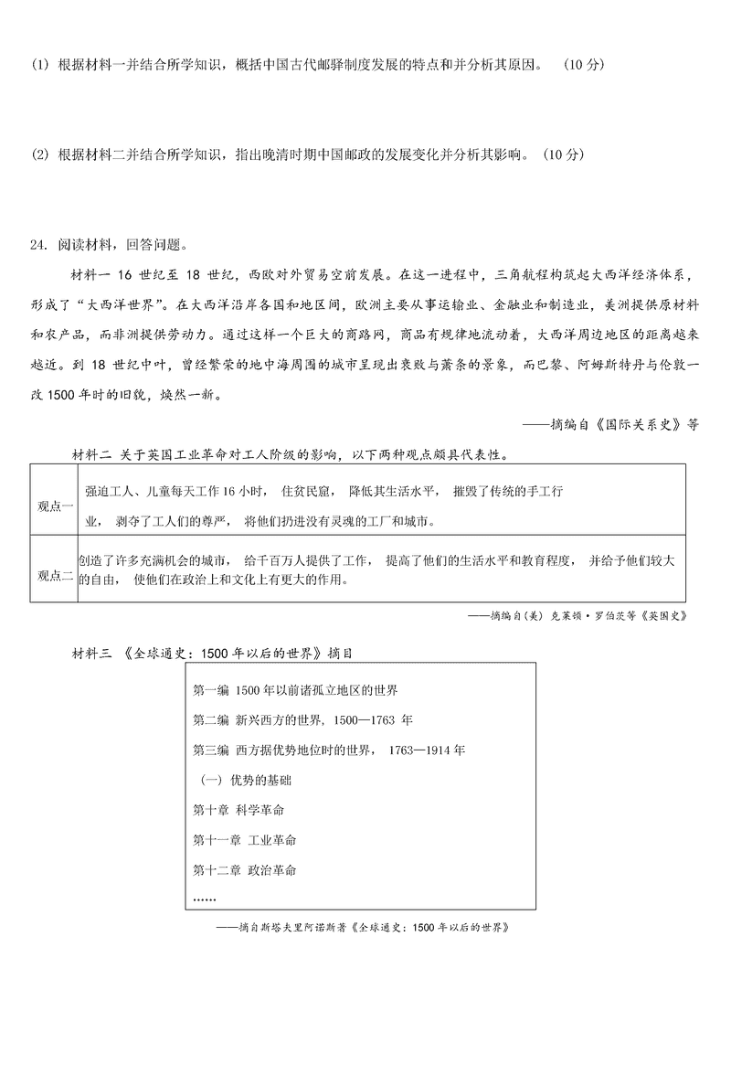 历史试题及答案解析