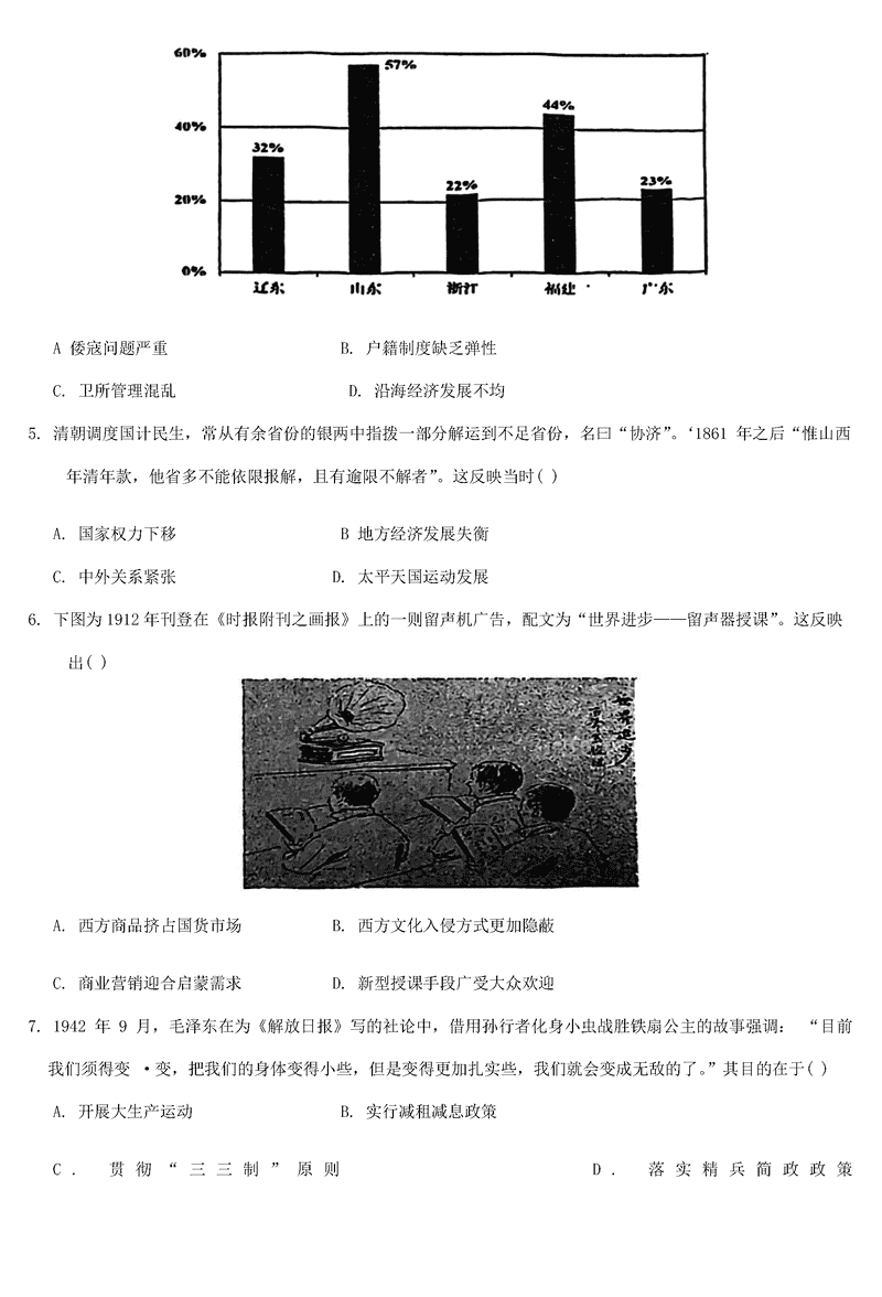 天津 文综试题