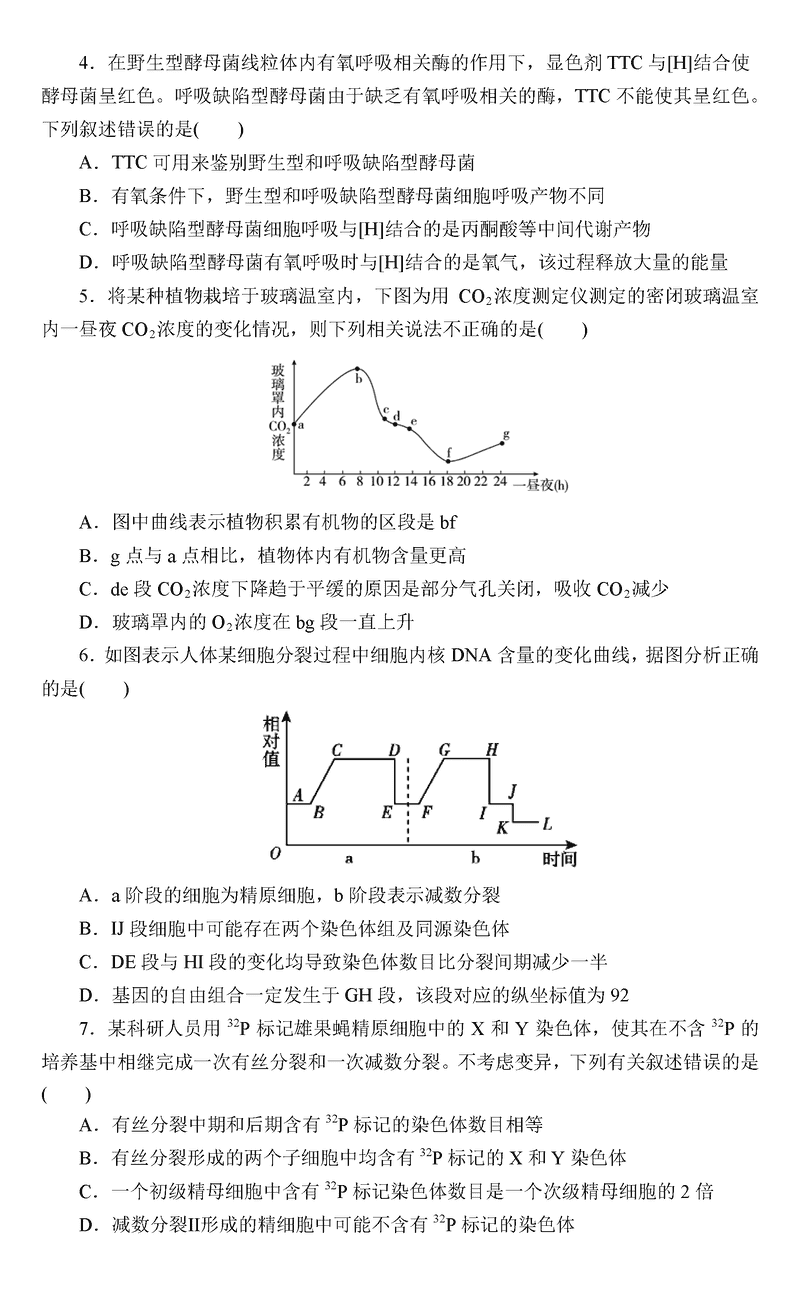 黑龙江省实验中学2025届高三上第三次月考生物试题及答案