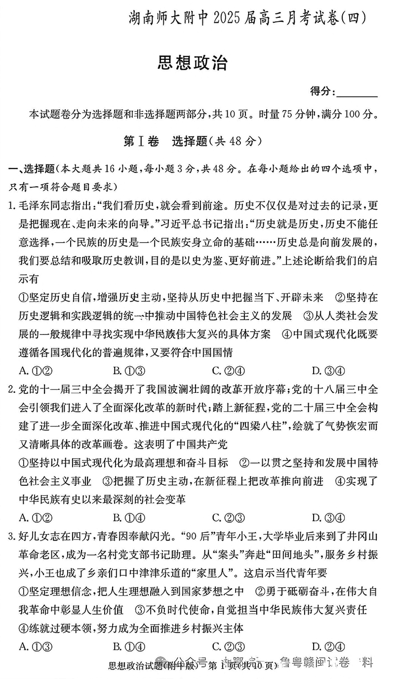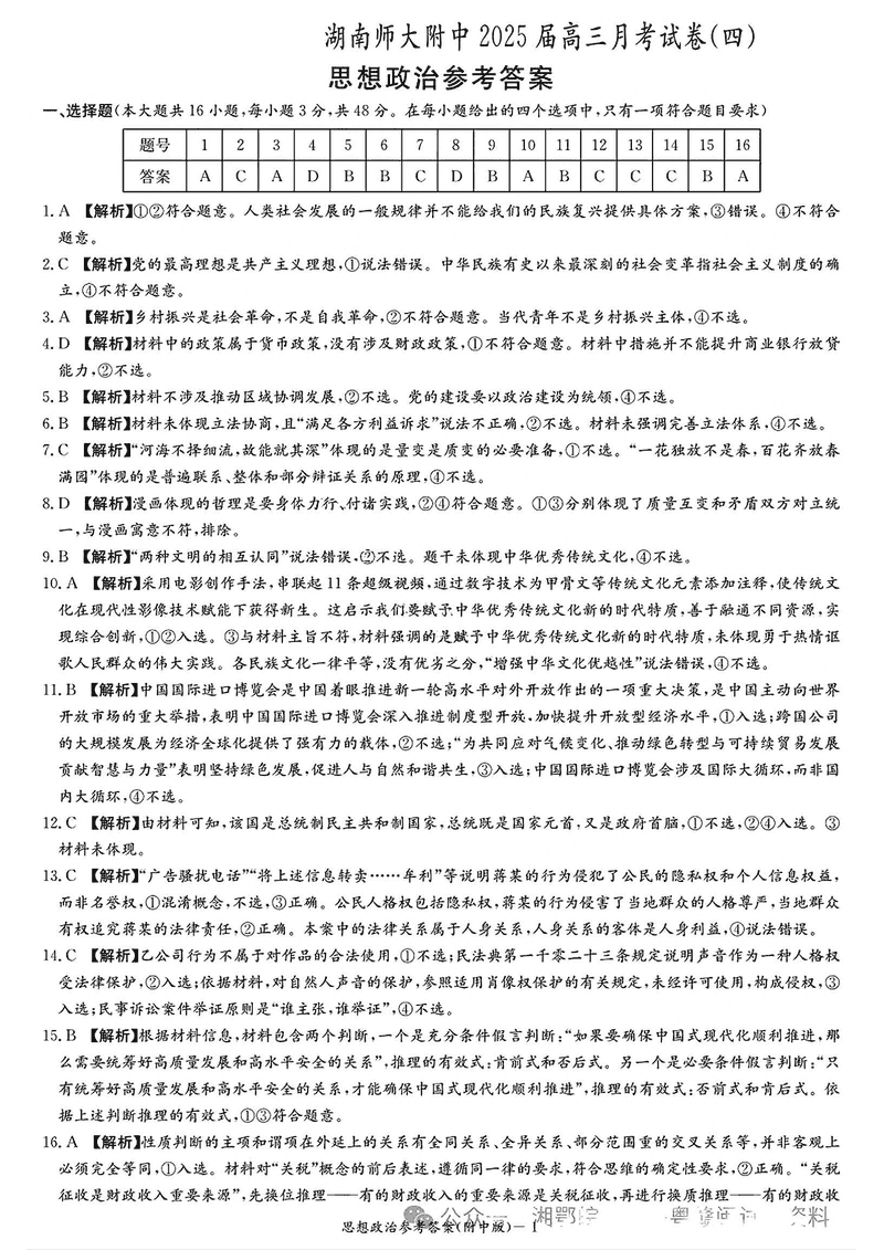 湖南师大附中2025届高三月考试卷(四)政治考试已于近日开考,为方便考生考后及时查看考试情况,查漏补缺、弥补不足,本文整理了试题答案解析相关信息!