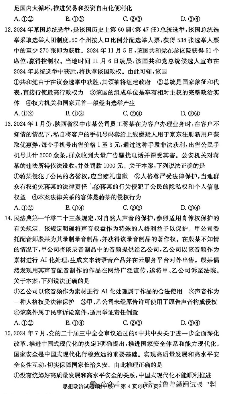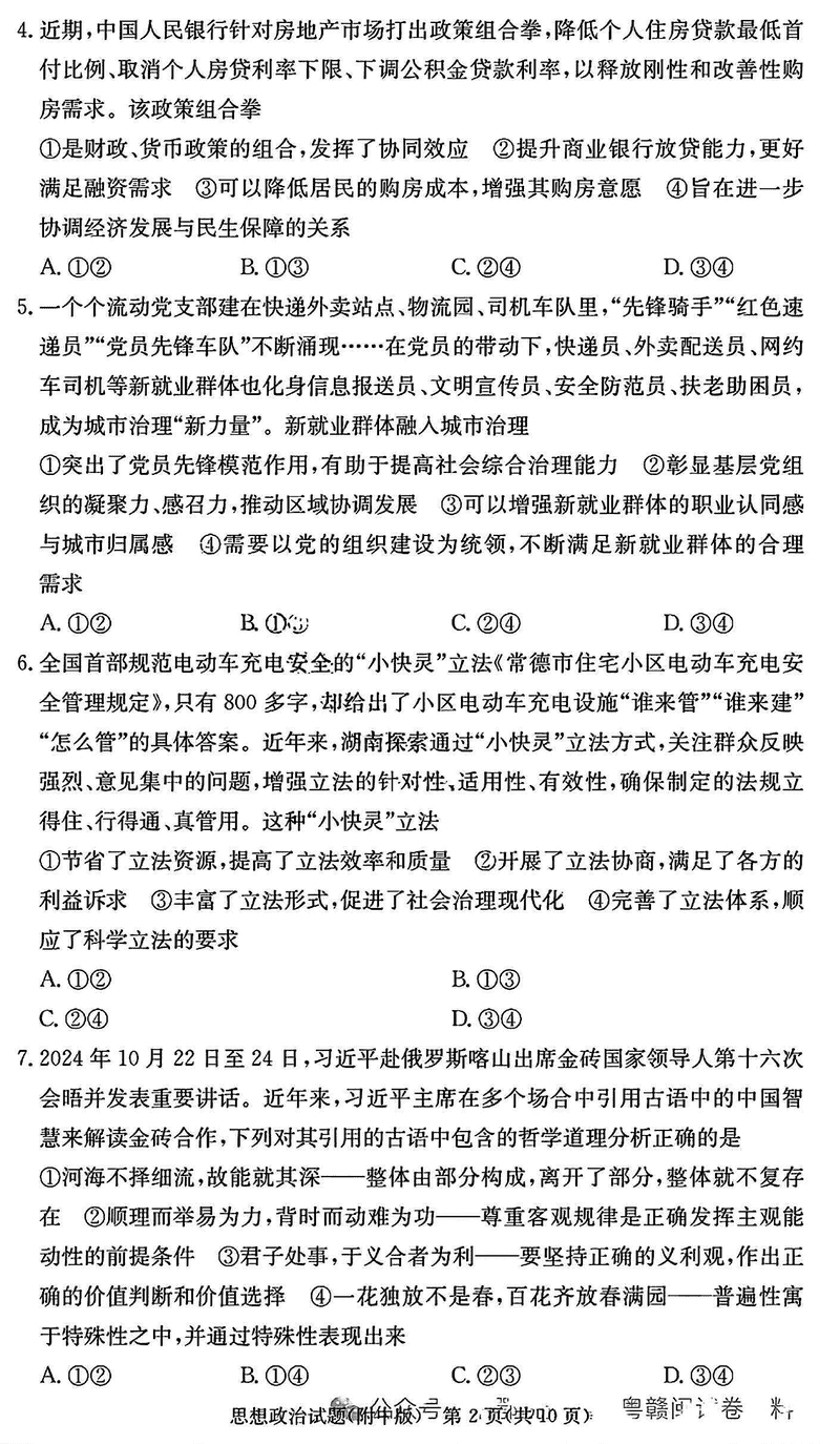 湖南师大附中2025届高三月考试卷(四)政治试题及答案