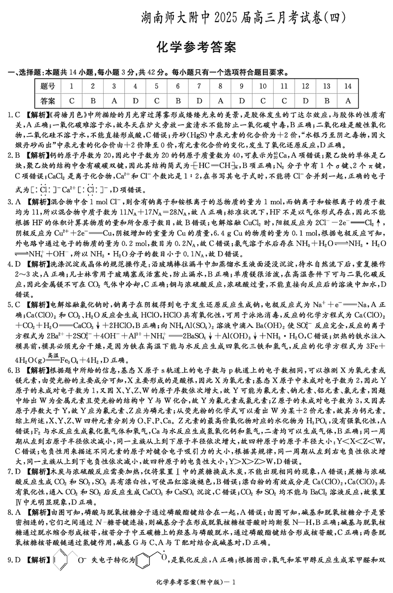 湖南师大附中2025届高三月考试卷(四)化学考试已于近日开考,为方便考生考后及时查看考试情况,查漏补缺、弥补不足,本文整理了试题答案解析相关信息!