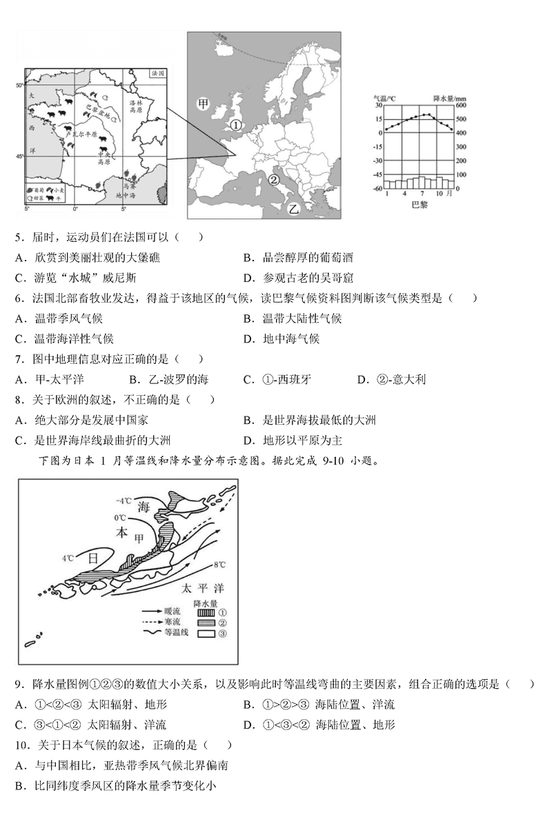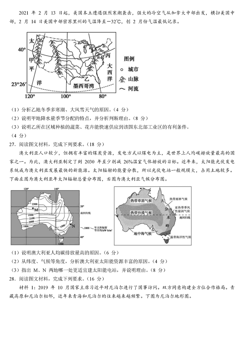 地理试题及答案解析