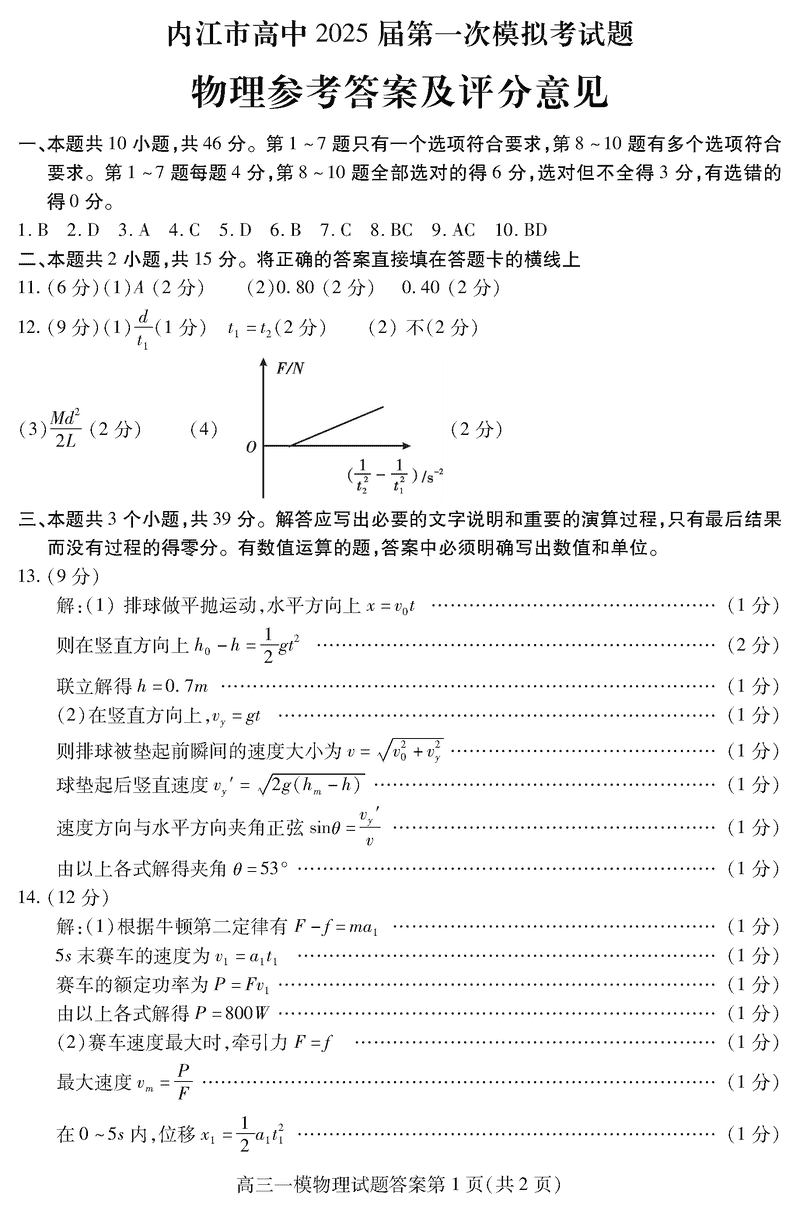 四川内江2025届高三上学期一模物理试题及答案 时间:2024-12-10 22:02 四川 理综试题 四川内江2025届高三上学期一模物理考试已于近日开考,为方便考生考后及时查看考试情况,查漏补缺、弥补不足,本文整理了试题答案解析相关信息! 汇总:四川内江2025届高三上学期一模试题及答案汇总 物理试题及答案解析
