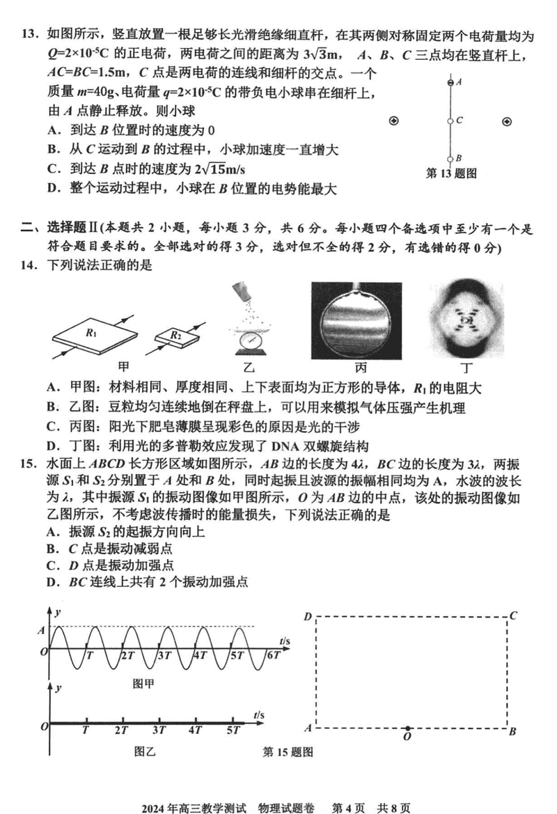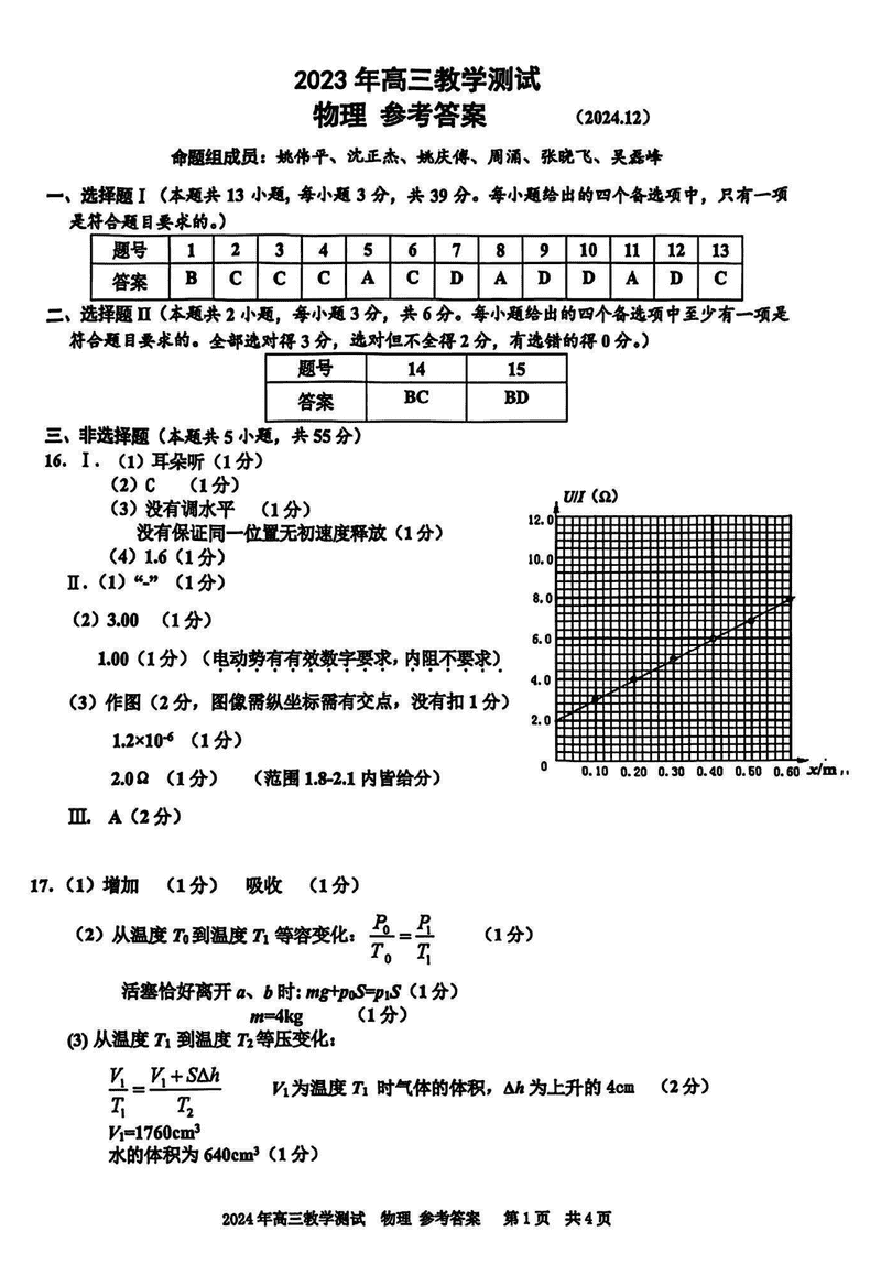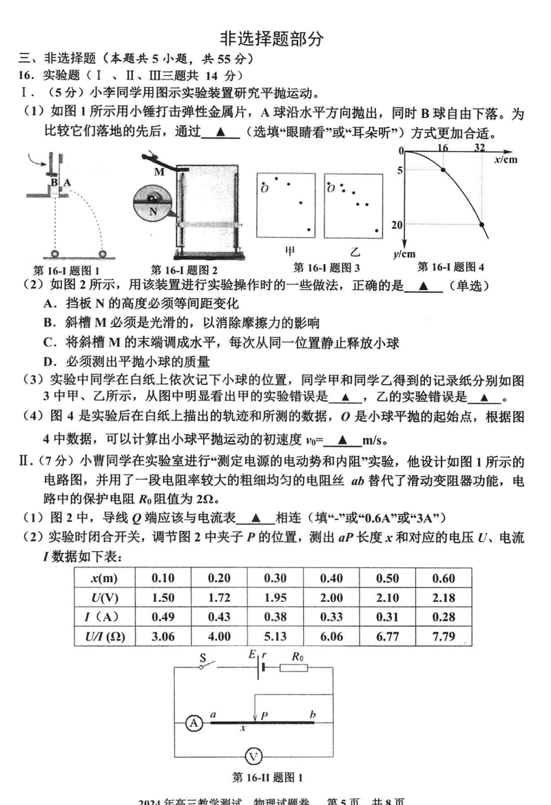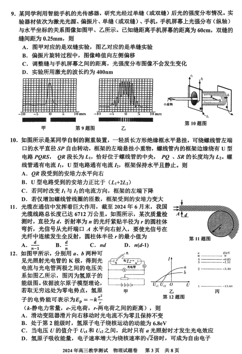 浙江嘉兴一模2024年高三12月教学测试物理考试已于近日开考,为方便考生考后及时查看考试情况,查漏补缺、弥补不足,本文整理了试题答案解析相关信息!