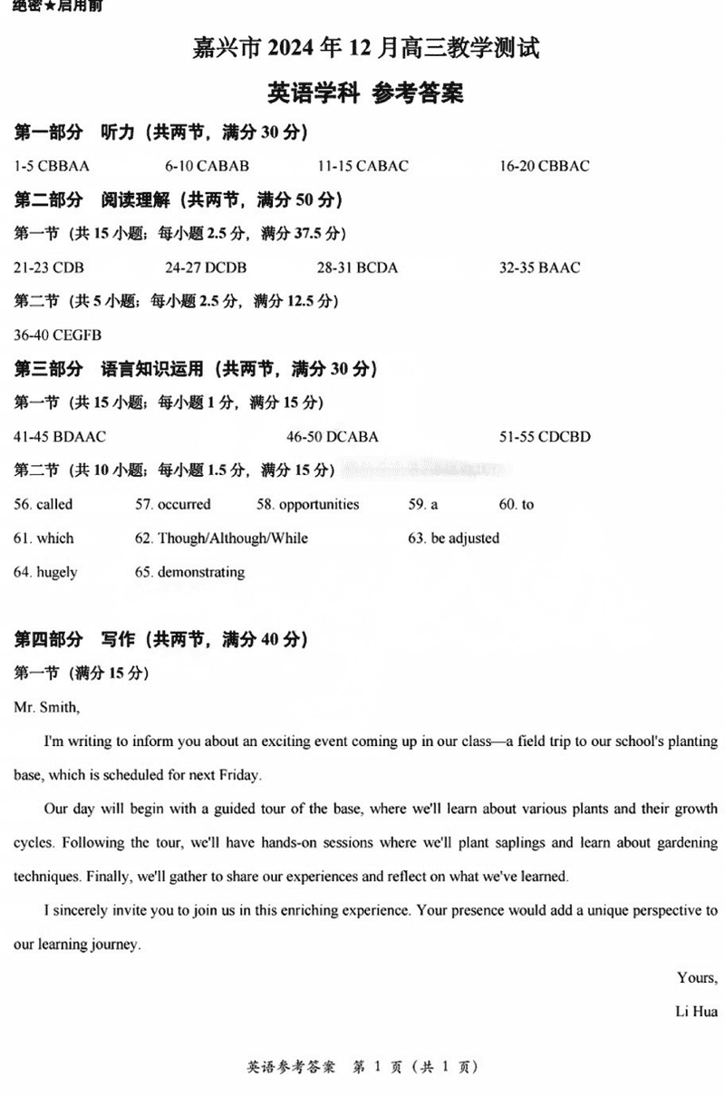 浙江嘉兴一模2024年高三12月教学测试英语考试已于近日开考,为方便考生考后及时查看考试情况,查漏补缺、弥补不足,本文整理了试题答案解析相关信息!