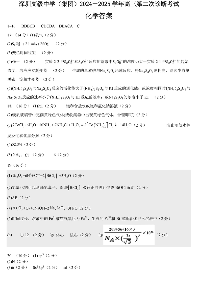 深圳高级中学2024-2025学年高三上学期第二次诊断化学考试已于近日开考,为方便考生考后及时查看考试情况,查漏补缺、弥补不足,本文整理了试题答案解析相关信息!