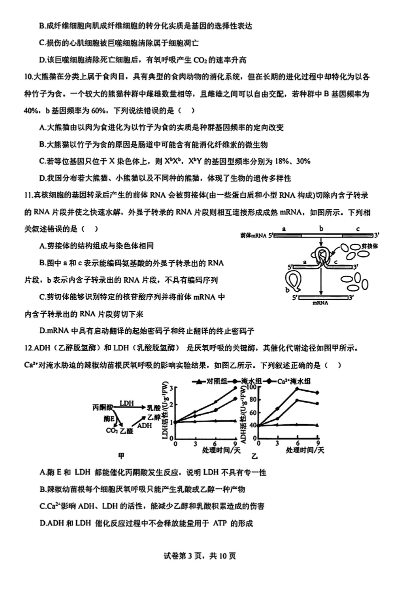 深圳高级中学2024-2025学年高三上第二次诊断生物试题及答案