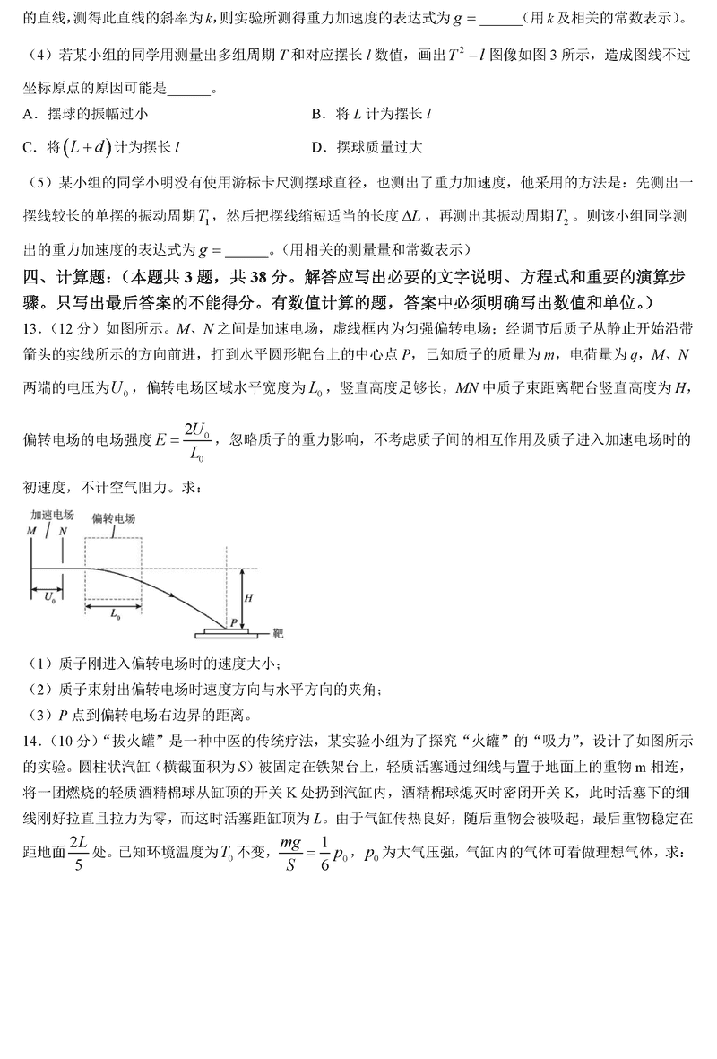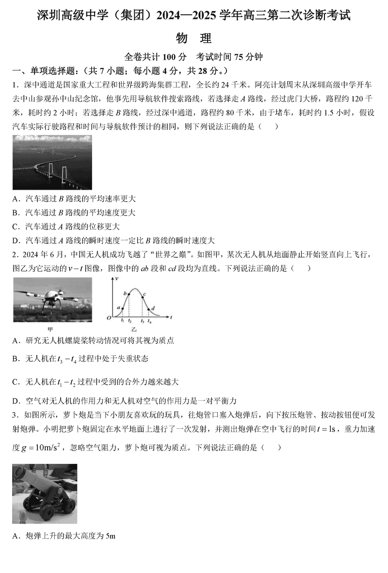 深圳高级中学2024-2025学年高三上第二次诊断物理试题及答案