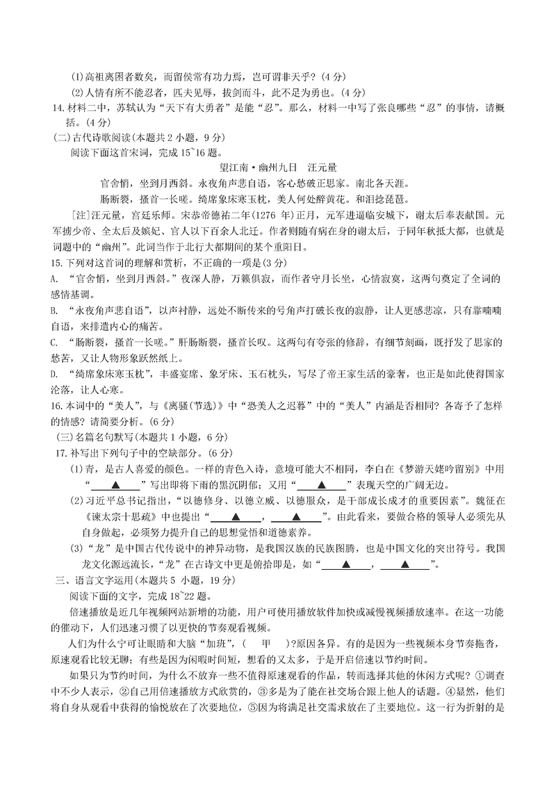 江苏省2024年12月金太阳百校联考语文试题及答案 时间:2024-12-12 12:15 江苏 语文试题 江苏省2024年12月金太阳百校联考语文考试已于近日开考,为方便考生考后及时查看考试情况,查漏补缺、弥补不足,本文整理了试题答案解析相关信息! 汇总:江苏省2024年12月金太阳百校联考试题及答案汇总 语文试题及答案解析