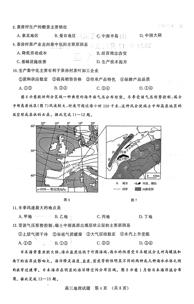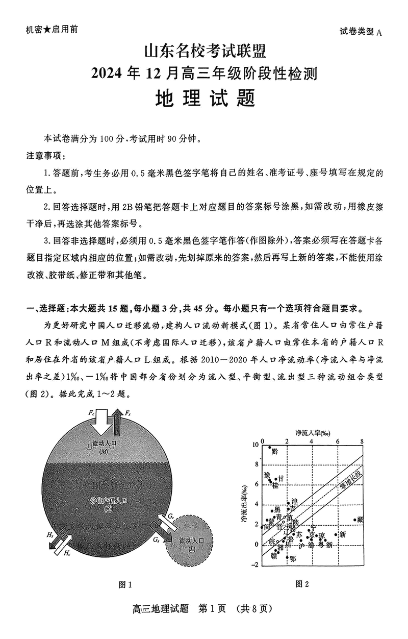 山东名校考试联盟2024年12月高三阶段测地理试题及答案