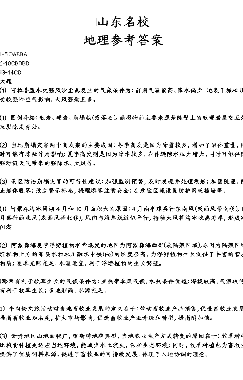 山东名校考试联盟2024年12月高三阶段测地理考试已于近日开考,为方便考生考后及时查看考试情况,查漏补缺、弥补不足,本文整理了试题答案解析相关信息!