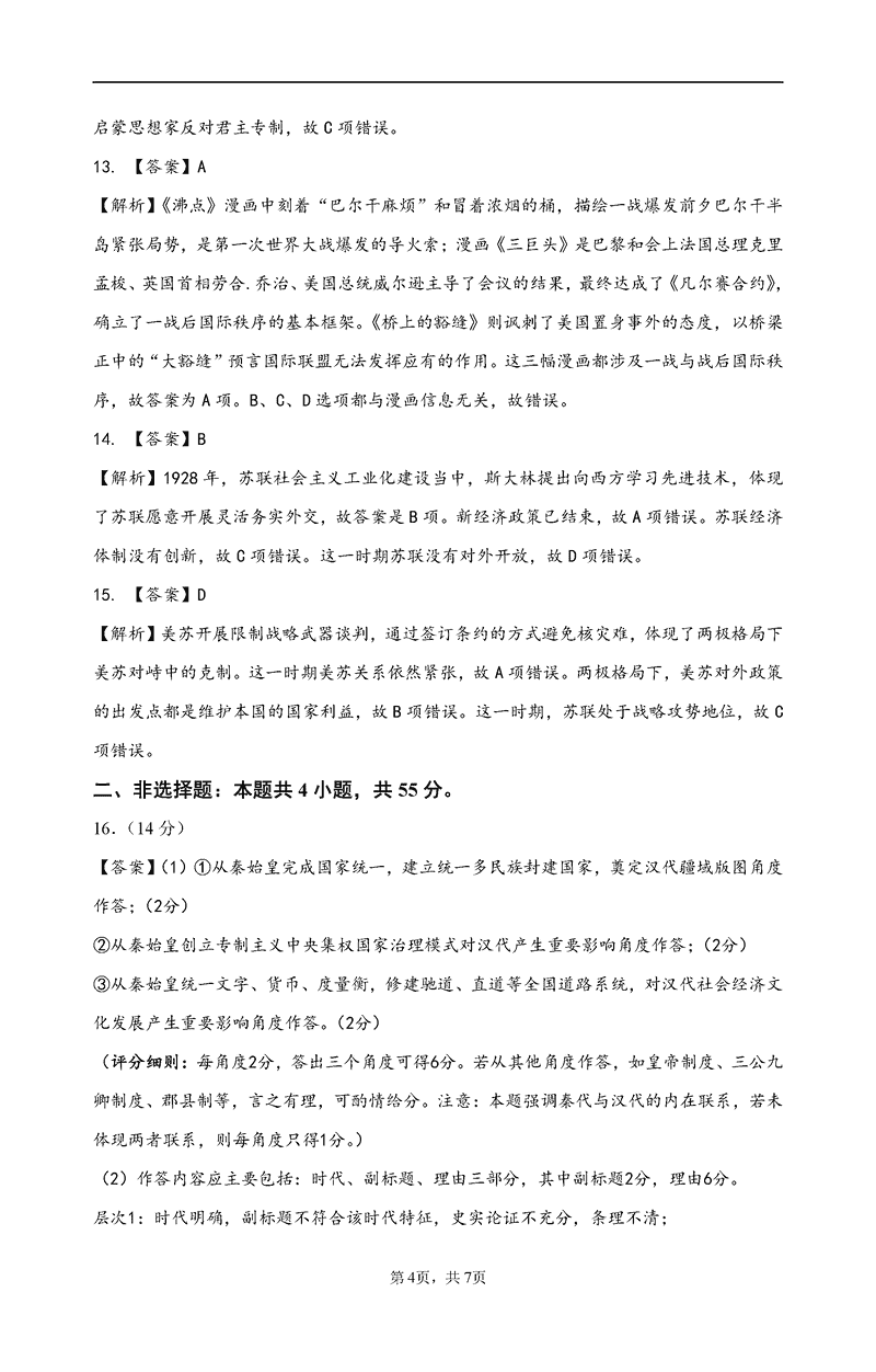 山东名校考试联盟2024年12月高三阶段测历史试题及答案