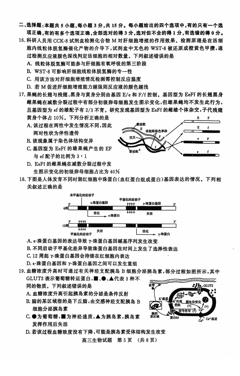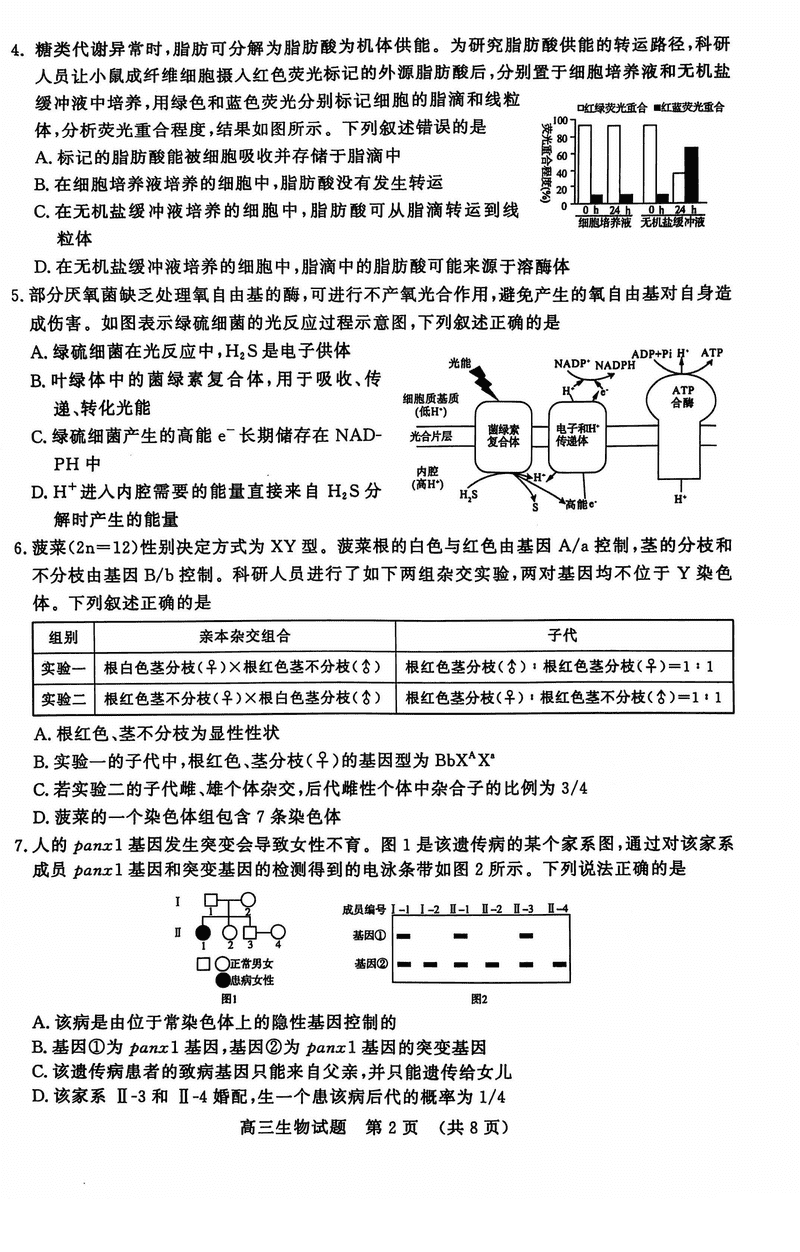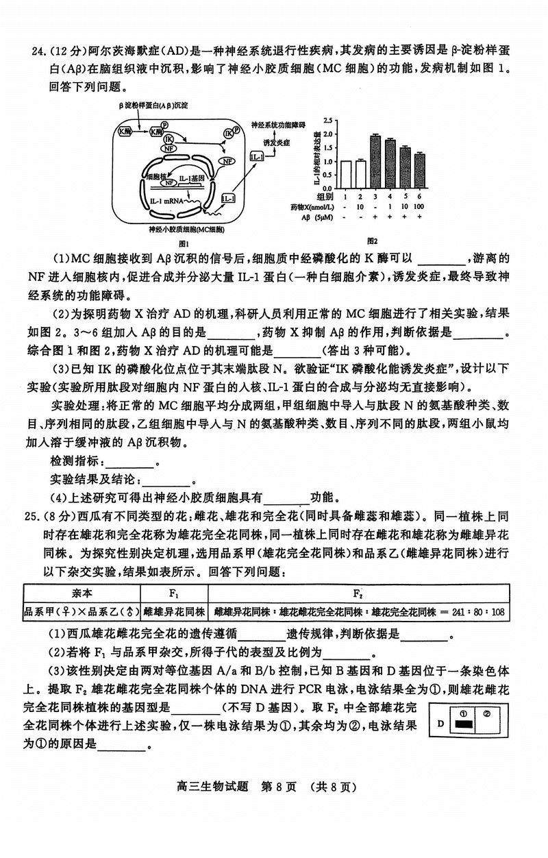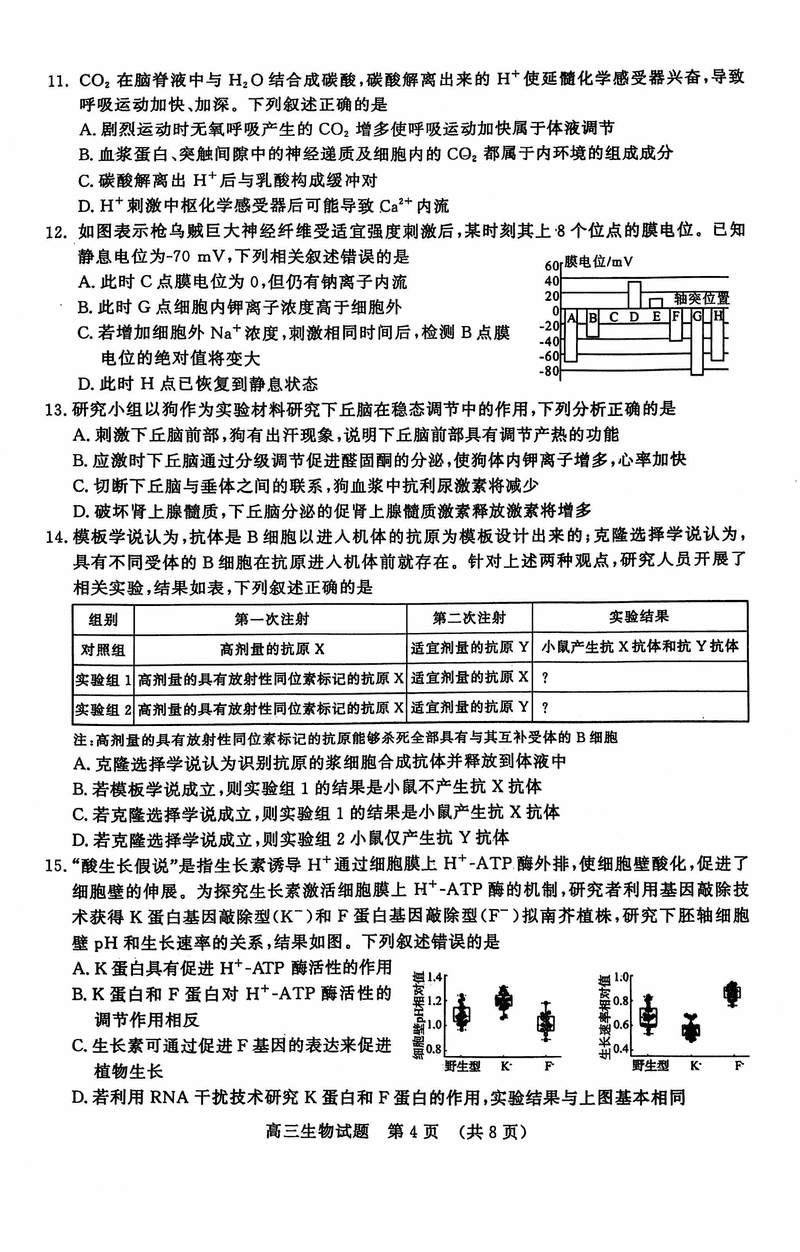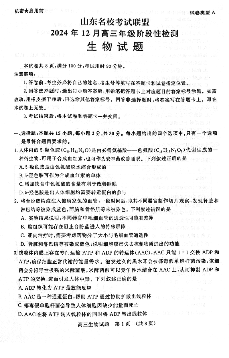 山东名校考试联盟2024年12月高三阶段测生物试题及答案
