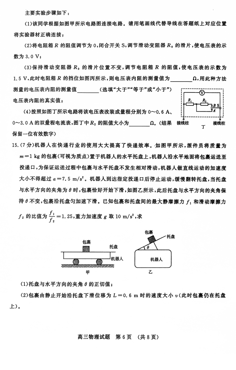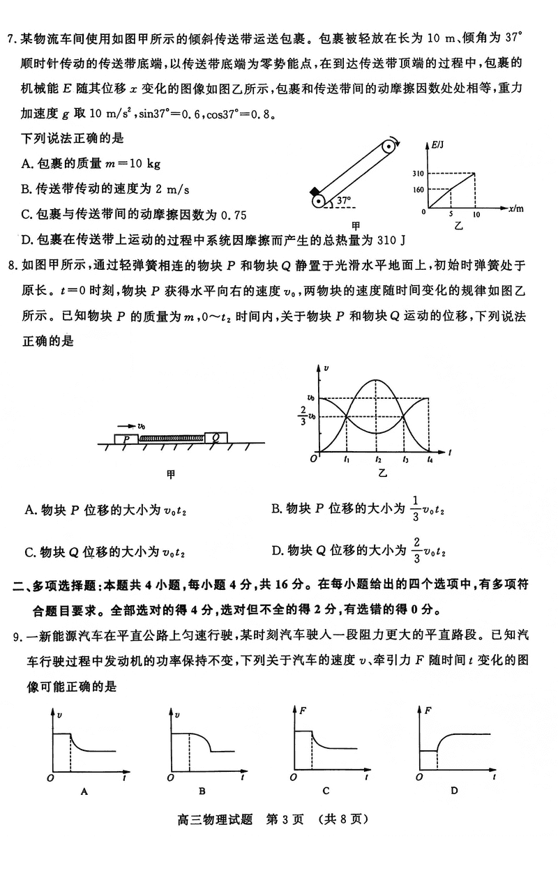 山东名校考试联盟2024年12月高三阶段测物理试题及答案
