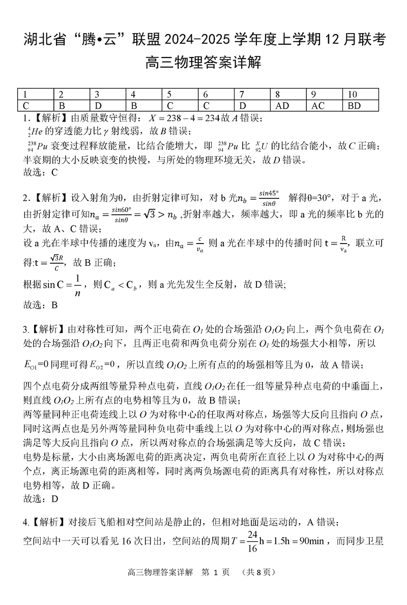 湖北省腾云联盟2025届高三12月联考物理试题及答案 时间:2024-12-12 12:34 湖北 理综试题 湖北省腾云联盟2025届高三12月联考物理考试已于近日开考,为方便考生考后及时查看考试情况,查漏补缺、弥补不足,本文整理了试题答案解析相关信息! 汇总:湖北省腾云联盟2025届高三12月联考试题及答案汇总 物理试题及答案解析