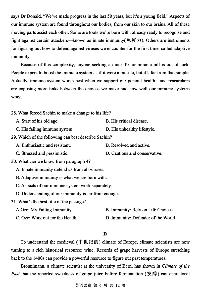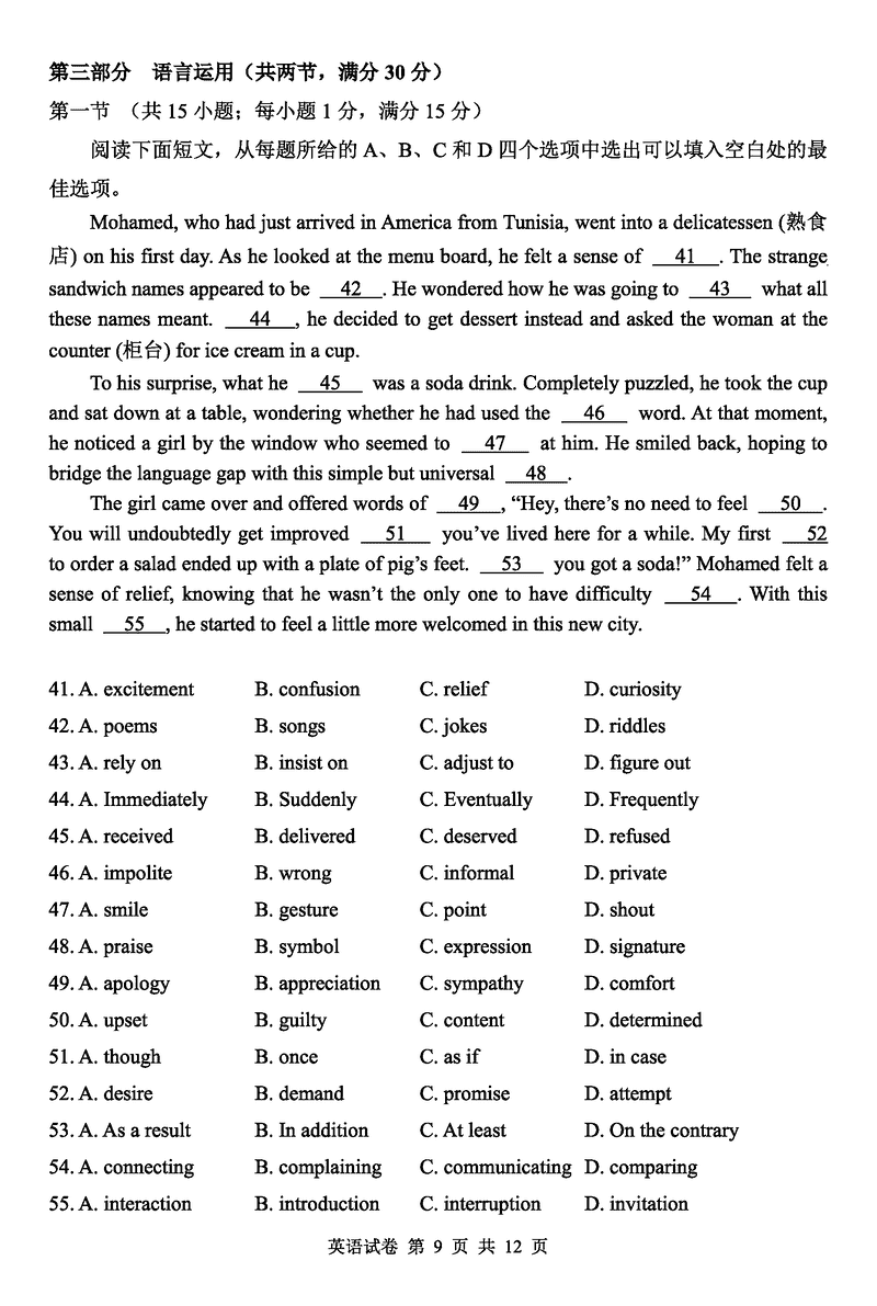 湖北省腾云联盟2025届高三12月联考英语试题及答案 时间:2024-12-12 12:34 湖北 英语试题 湖北省腾云联盟2025届高三12月联考英语考试已于近日开考,为方便考生考后及时查看考试情况,查漏补缺、弥补不足,本文整理了试题答案解析相关信息! 汇总:湖北省腾云联盟2025届高三12月联考试题及答案汇总 英语试题及答案解析