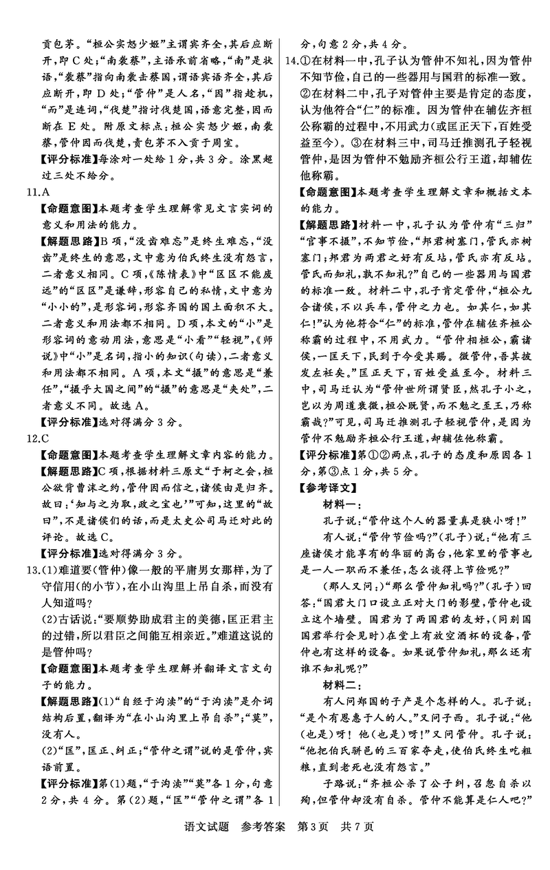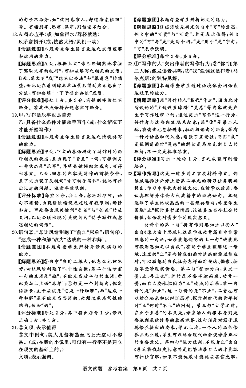 语文试题及答案解析