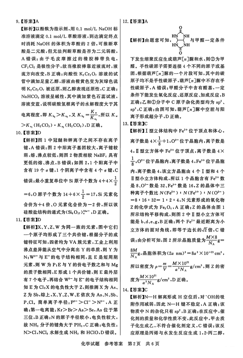 2025届全国T8八省八校高三12月联合测评化学试题及答案