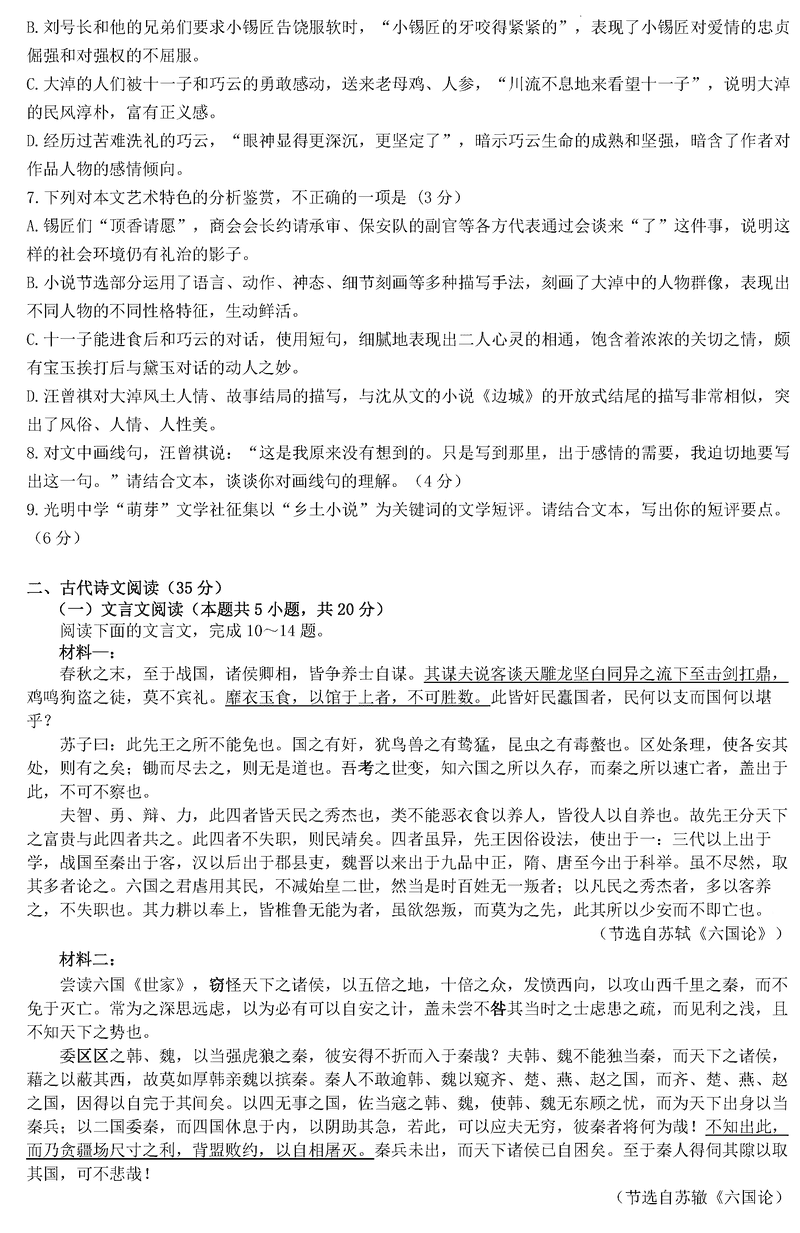 语文试题及答案解析