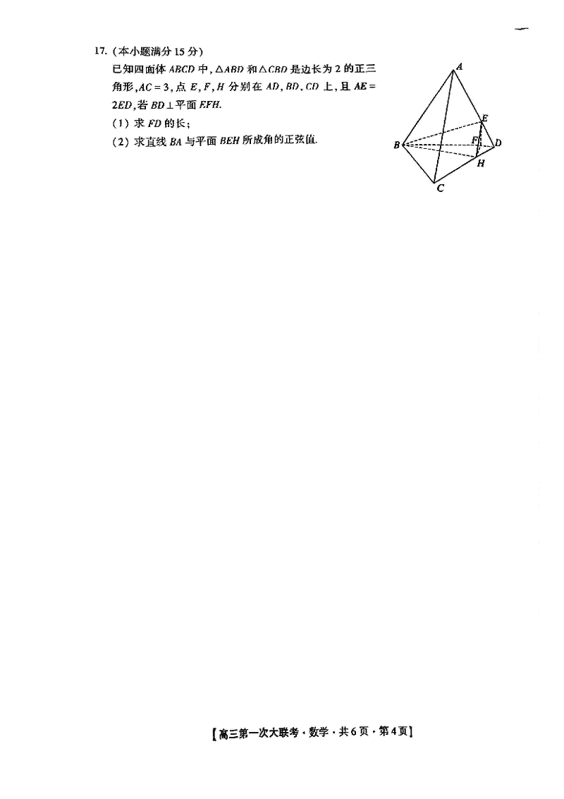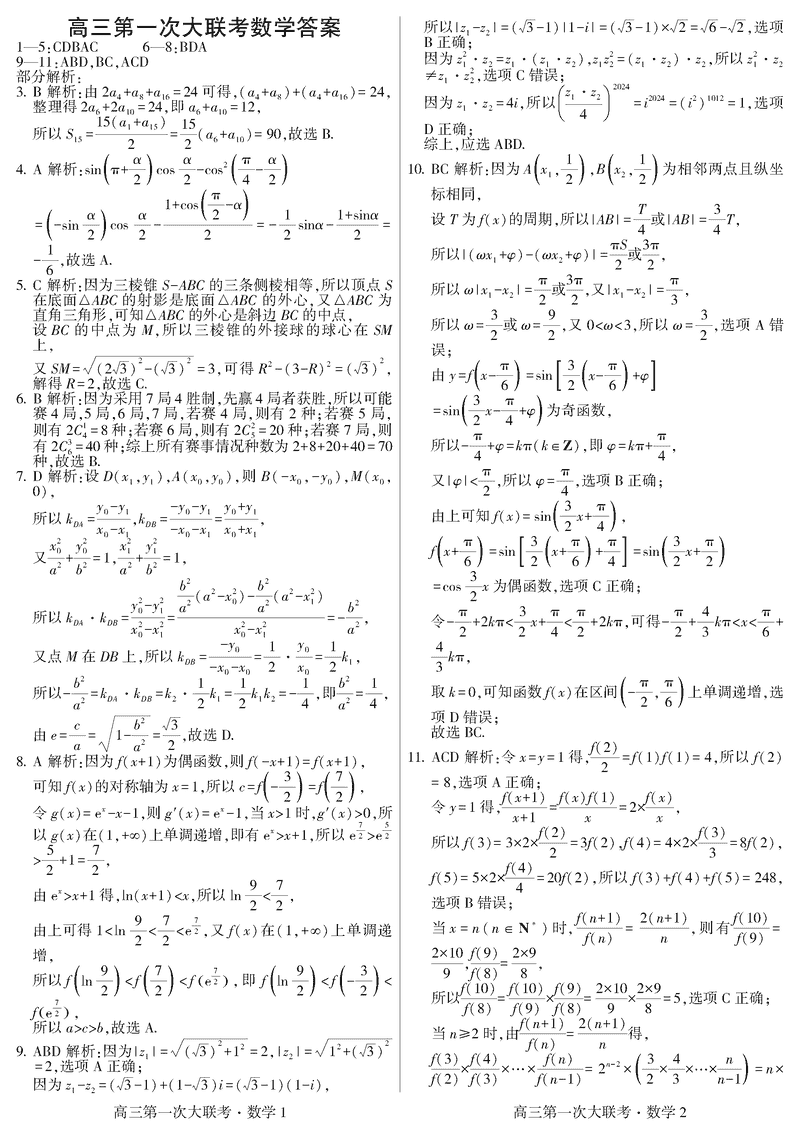 邯郸部分学校2025届高三第一次大联考模拟预测数学试题及答案
