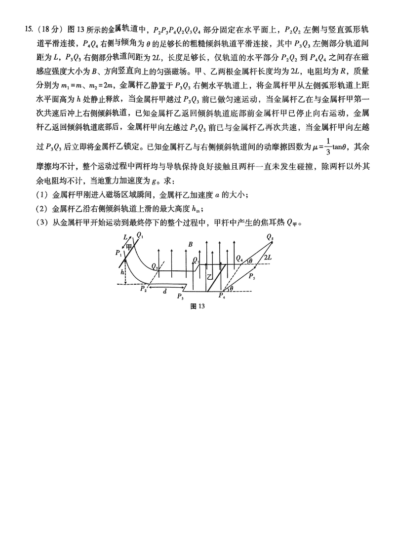 重庆巴蜀中学2025届高三12月适应性月考(四)物理试题及答案