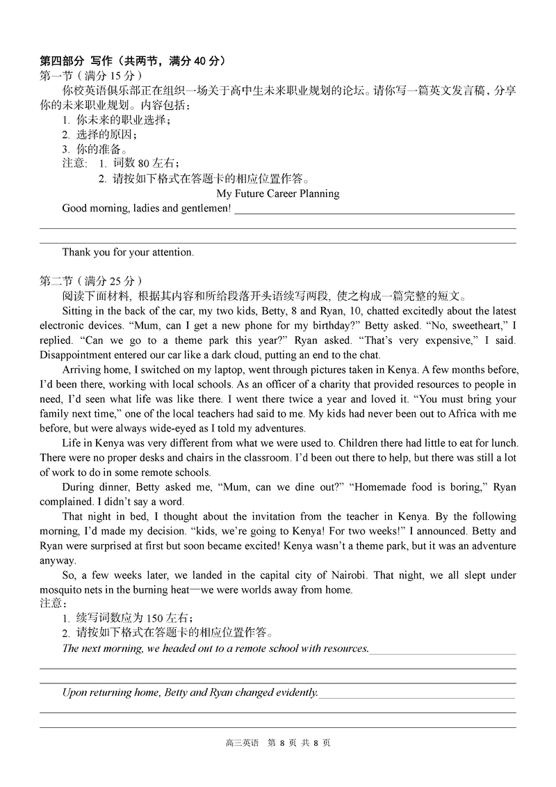 广西名校2025届高中毕业班12月模拟英语试题及答案