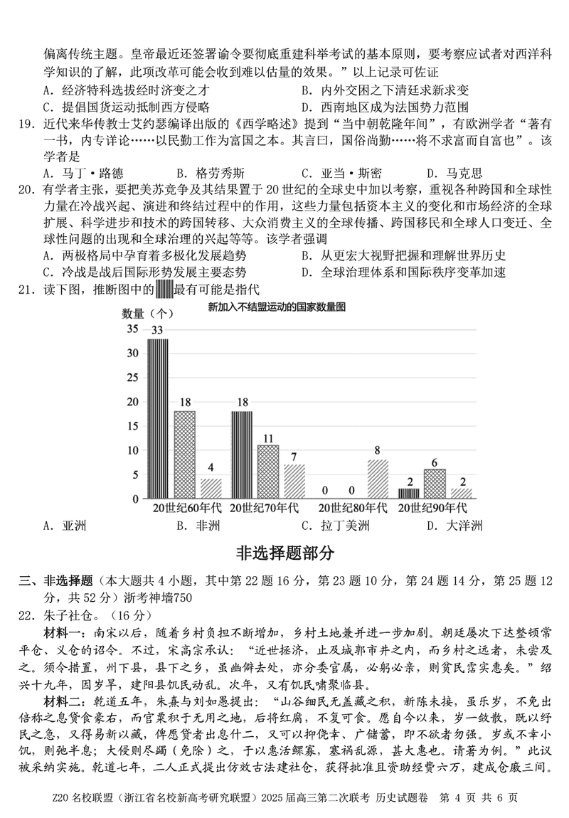 浙江Z20名校联盟2025届高三上学期第二次联考历史试题及答案