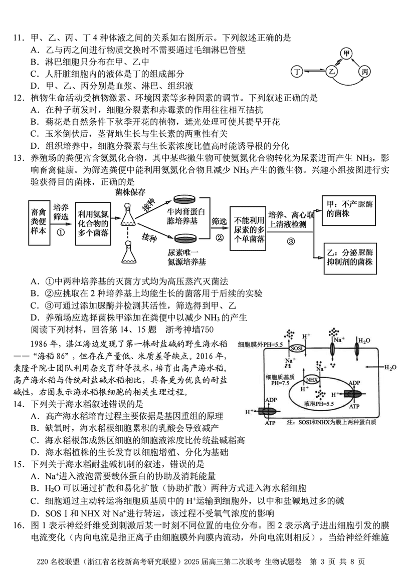 浙江Z20名校联盟2025届高三上学期第二次联考生物考试已于近日开考,为方便考生考后及时查看考试情况,查漏补缺、弥补不足,本文整理了试题答案解析相关信息!