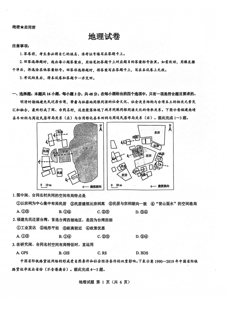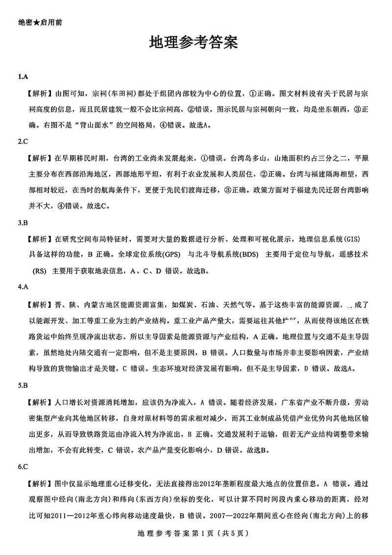 地理试题及答案解析