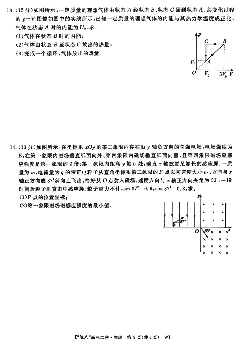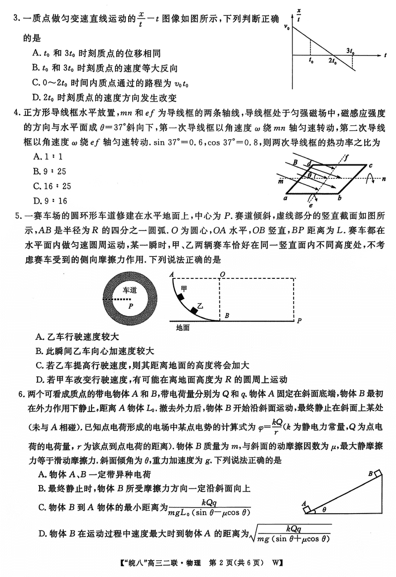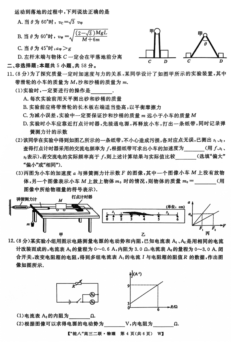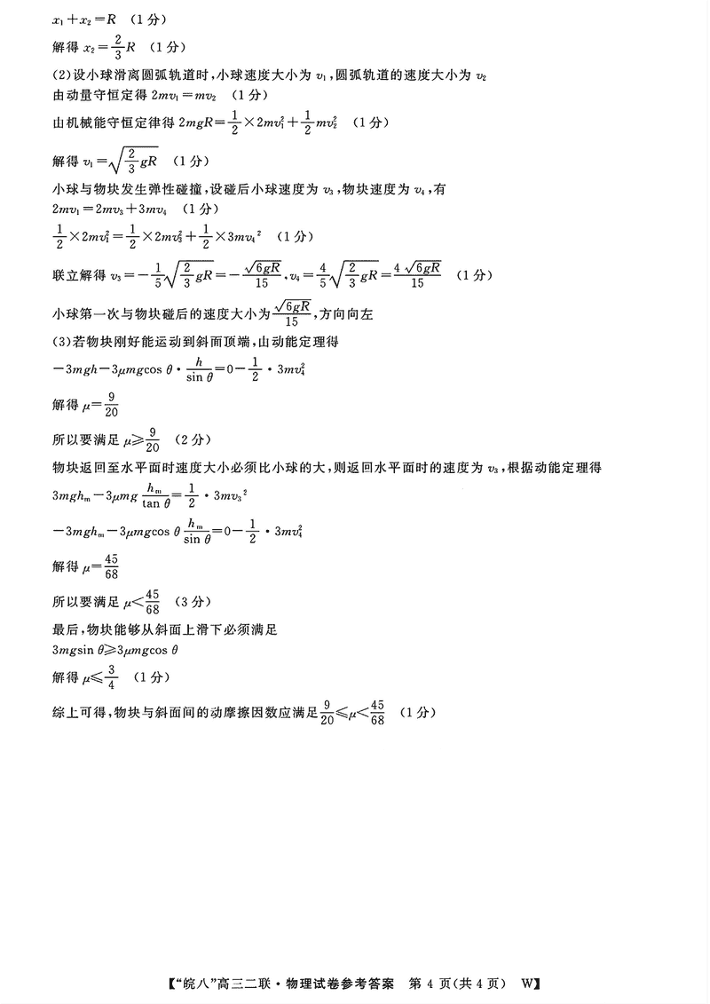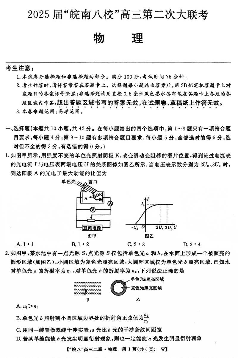 皖南八校2025届高三上学期第二次大联考物理试题及答案