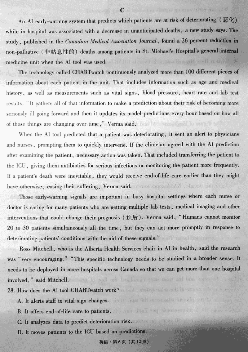 西南名校联盟2025届高三3+3+3诊断性联考(一)英语试题及答案