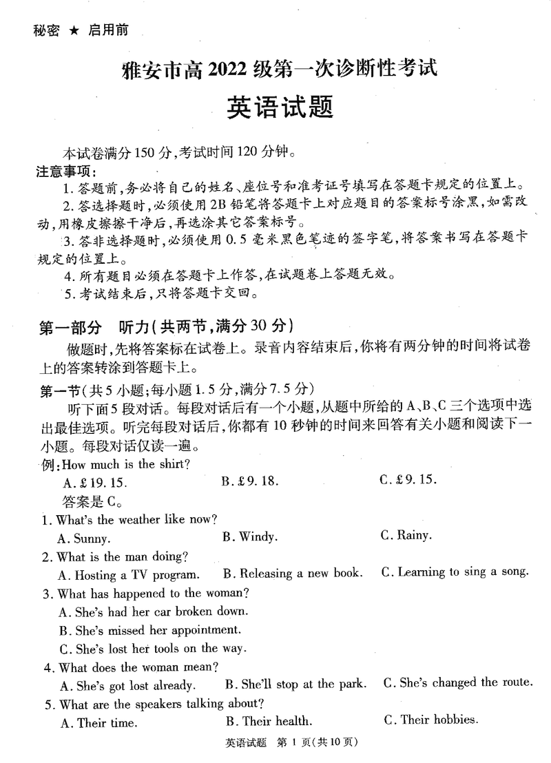 四川九市一诊2025届高三12月第一次诊断英语考试已于近日开考,为方便考生考后及时查看考试情况,查漏补缺、弥补不足,本文整理了试题答案解析相关信息!