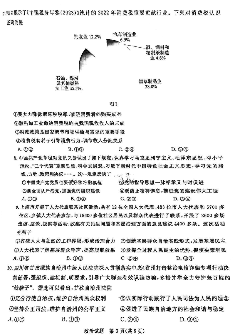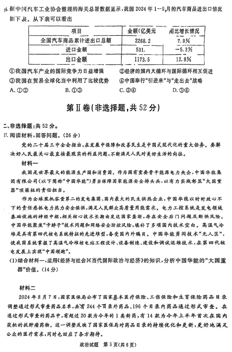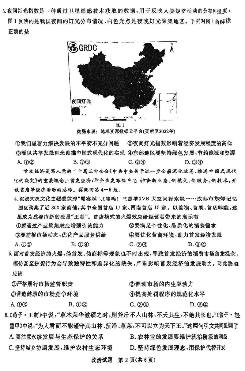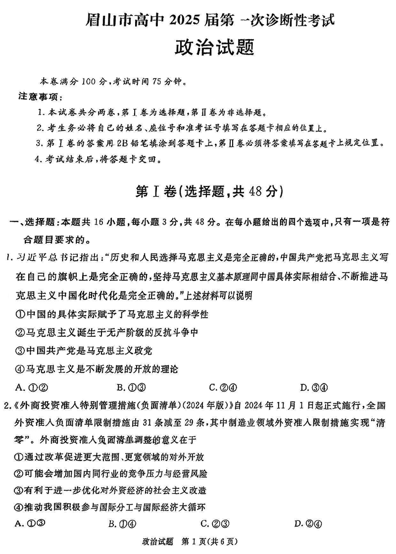 四川九市一诊2025届高三12月第一次诊断政治试题及答案