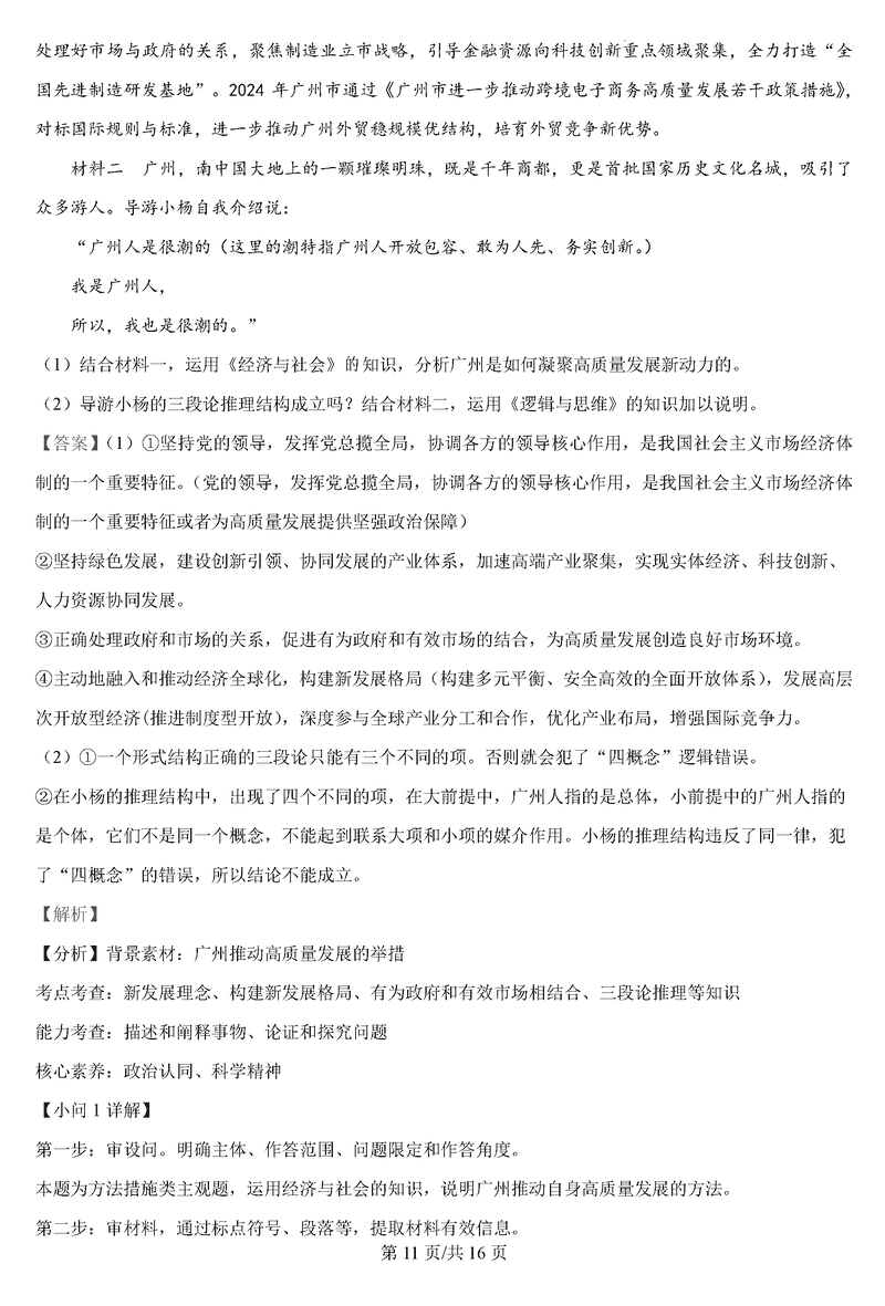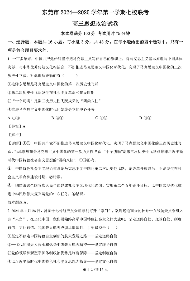 东莞七校联考2025届高三上学期12月月考政治试题及答案
