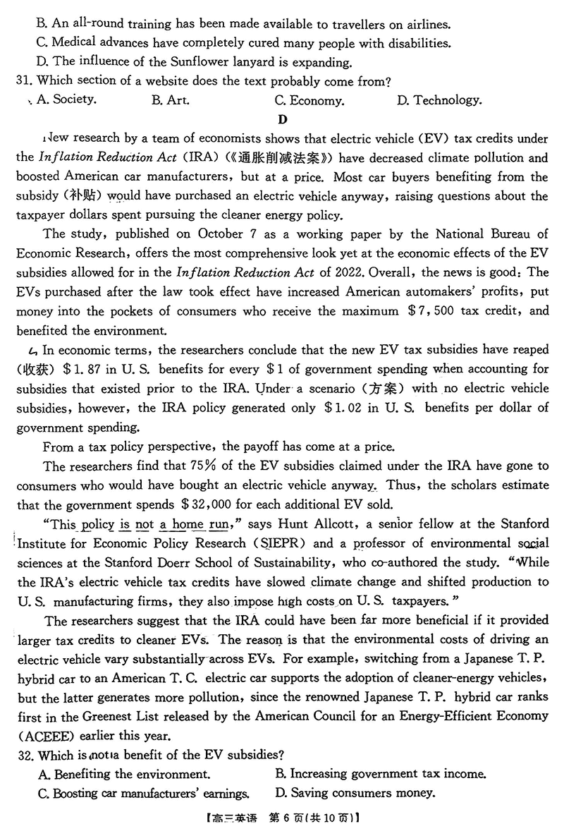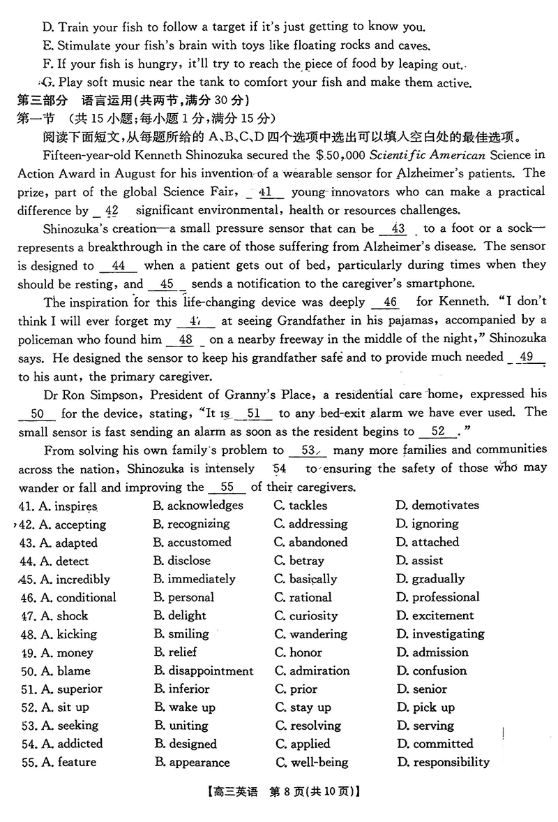 2024年江西三新协同教研共同体高三12月联考英语考试已于近日开考,为方便考生考后及时查看考试情况,查漏补缺、弥补不足,本文整理了试题答案解析相关信息!