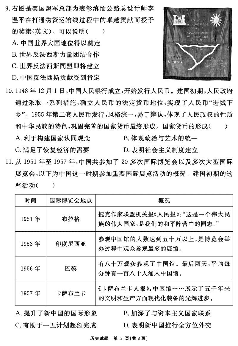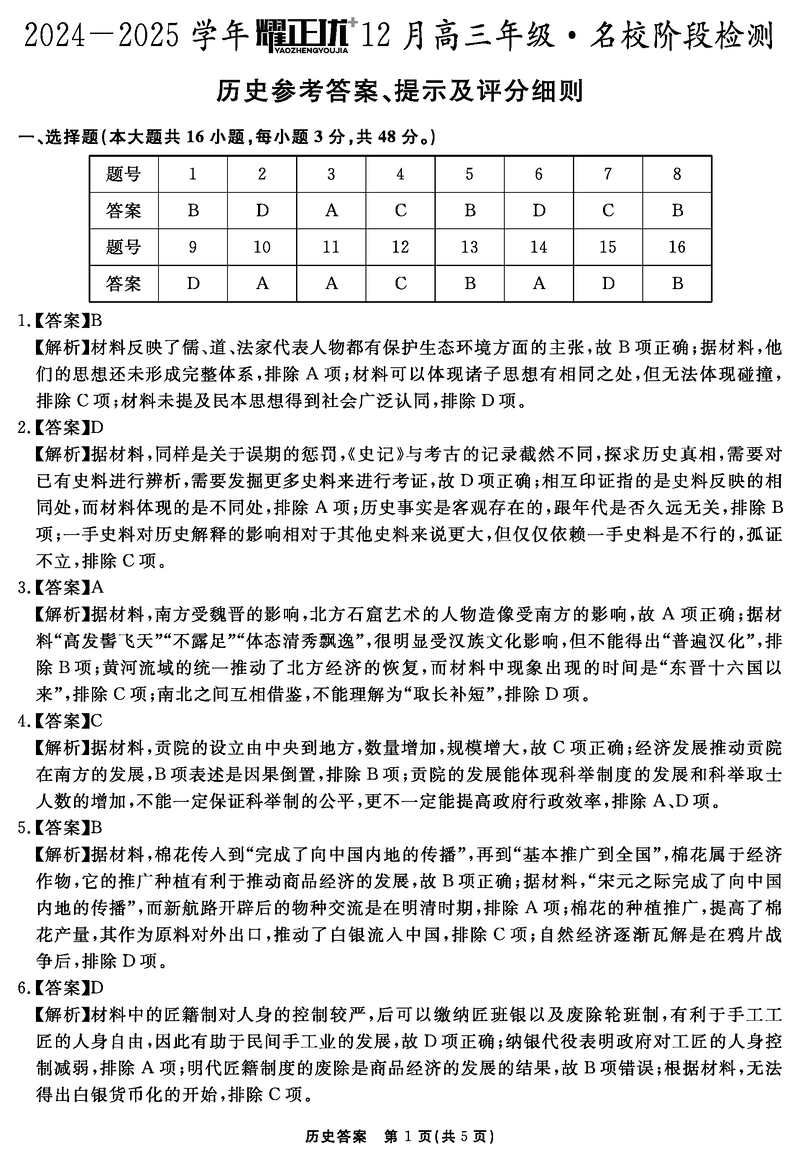 安徽2024-2025学年耀正优12月高三名校阶段检测历史考试已于近日开考,为方便考生考后及时查看考试情况,查漏补缺、弥补不足,本文整理了试题答案解析相关信息!